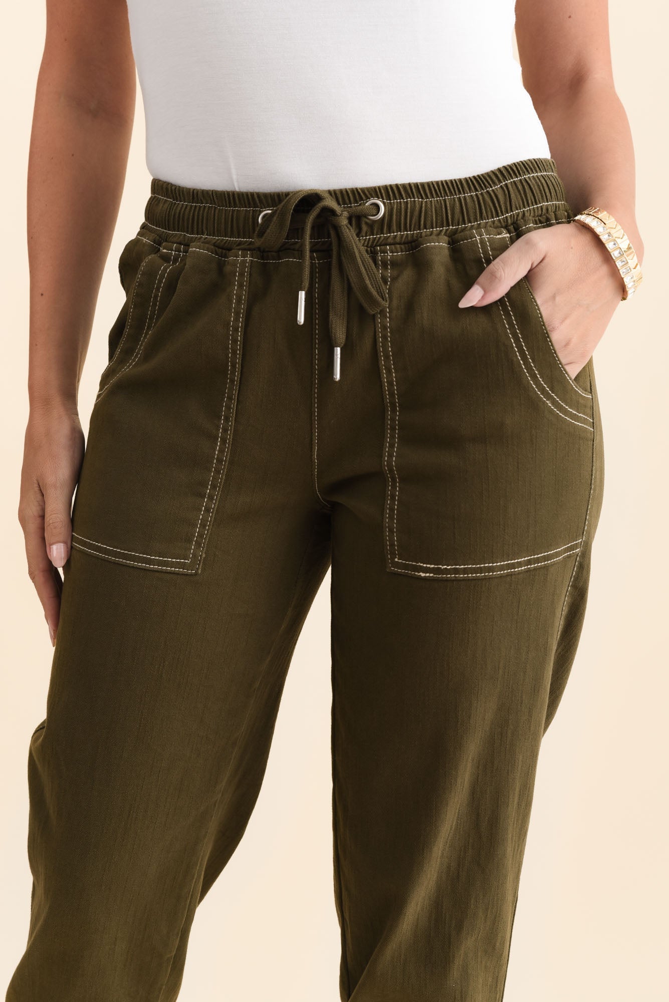 Eliana Khaki Cotton Stretch Jeans