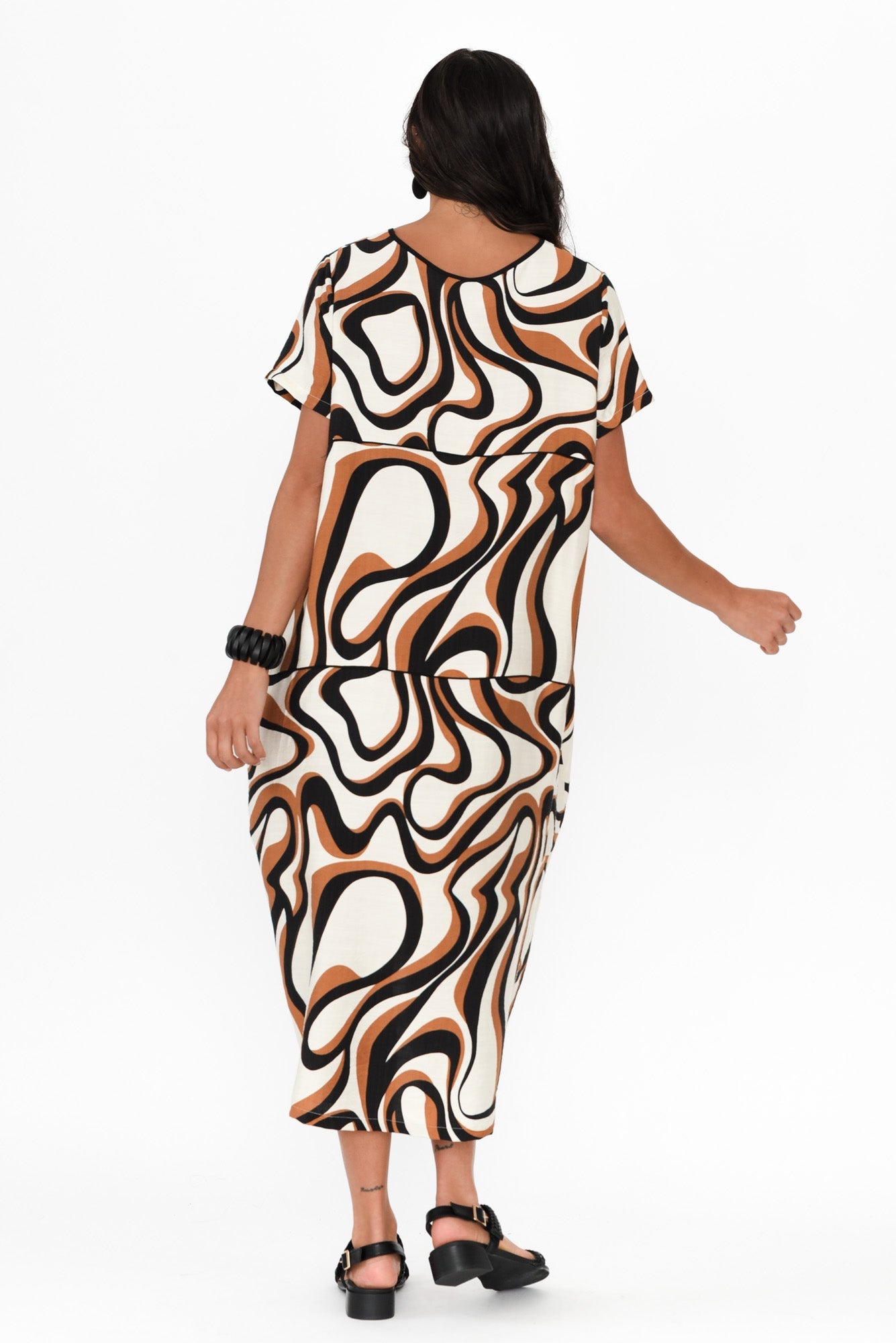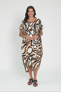 Elinda Brown Swirl Pocket Dress