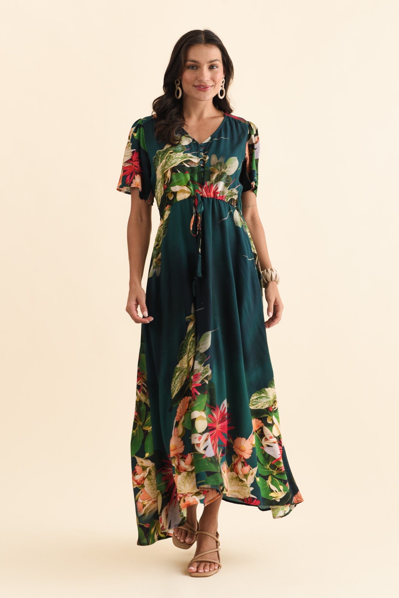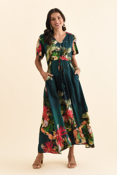 ELISSA EMERALD FLORAL BUTTON DRESS