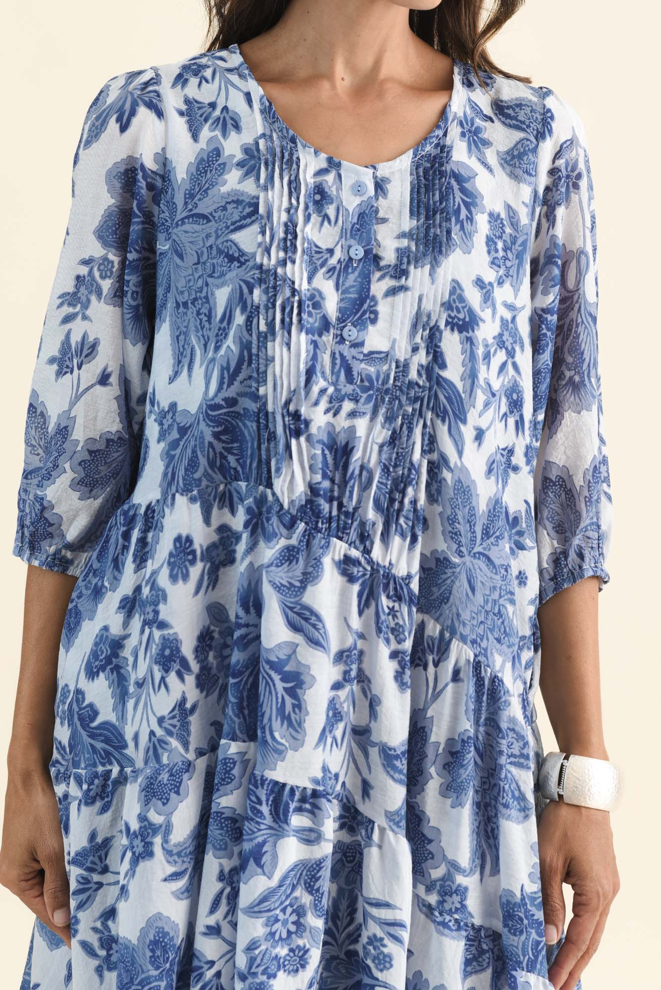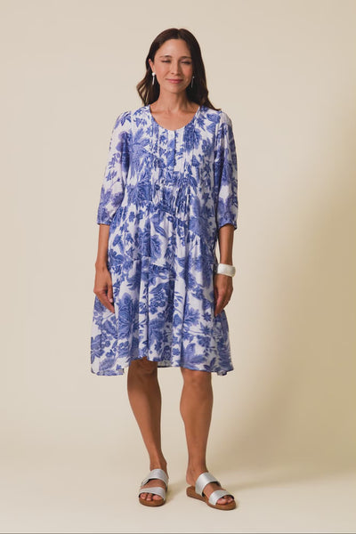 ESTA BLUE FLORAL SLEEVED DRESS