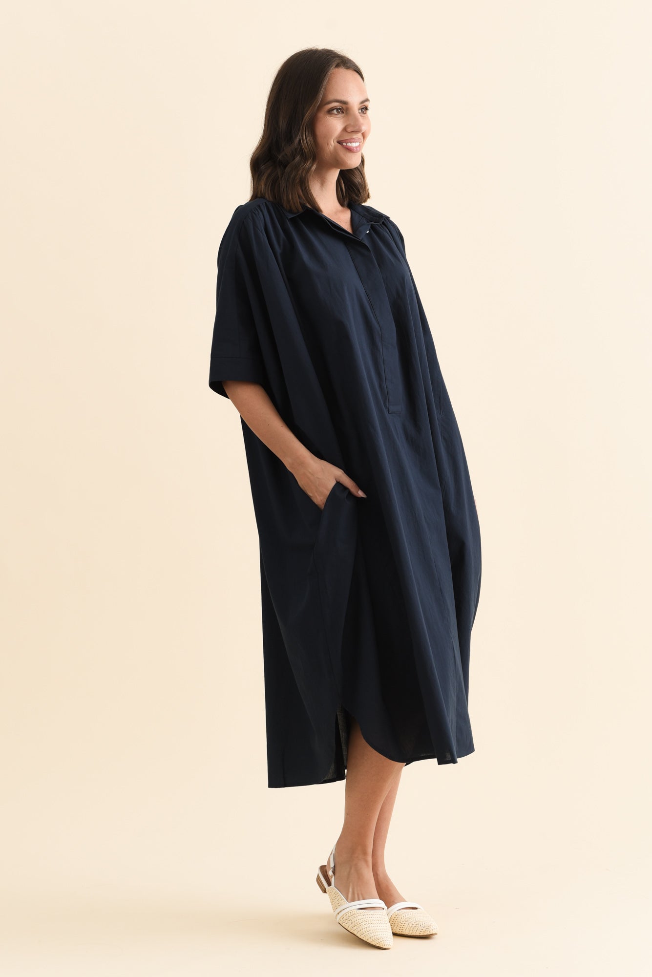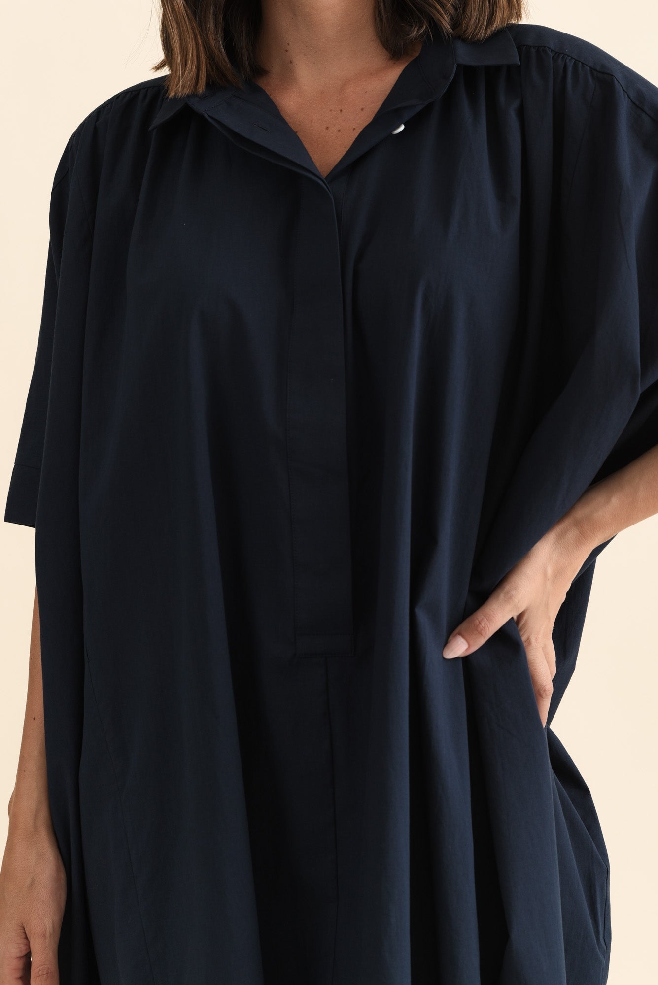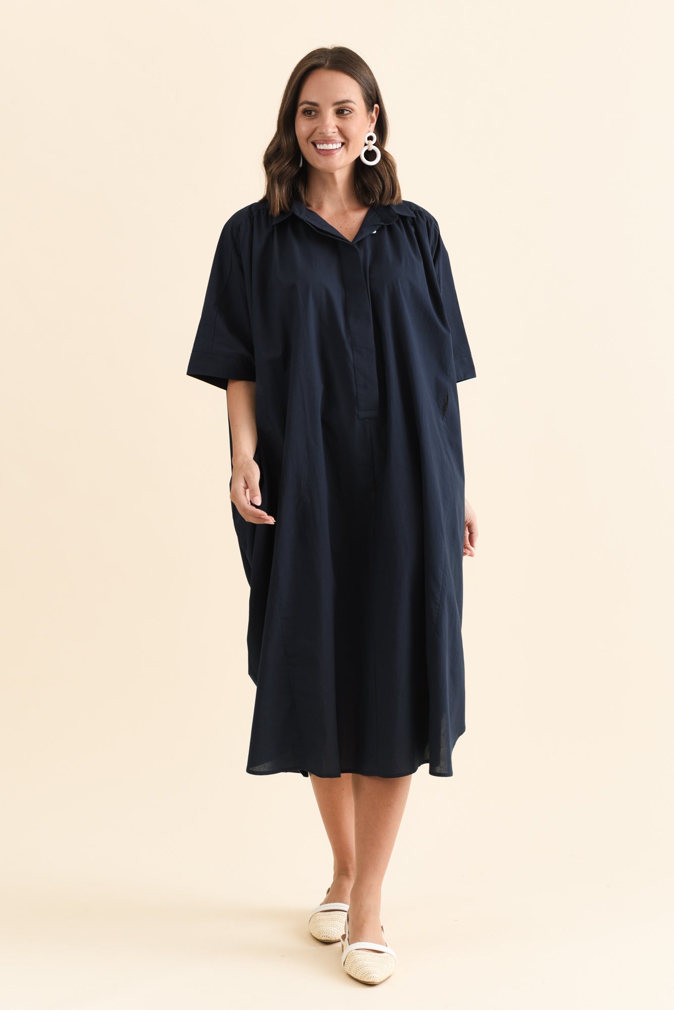 Esther Navy Cotton Tie Dress