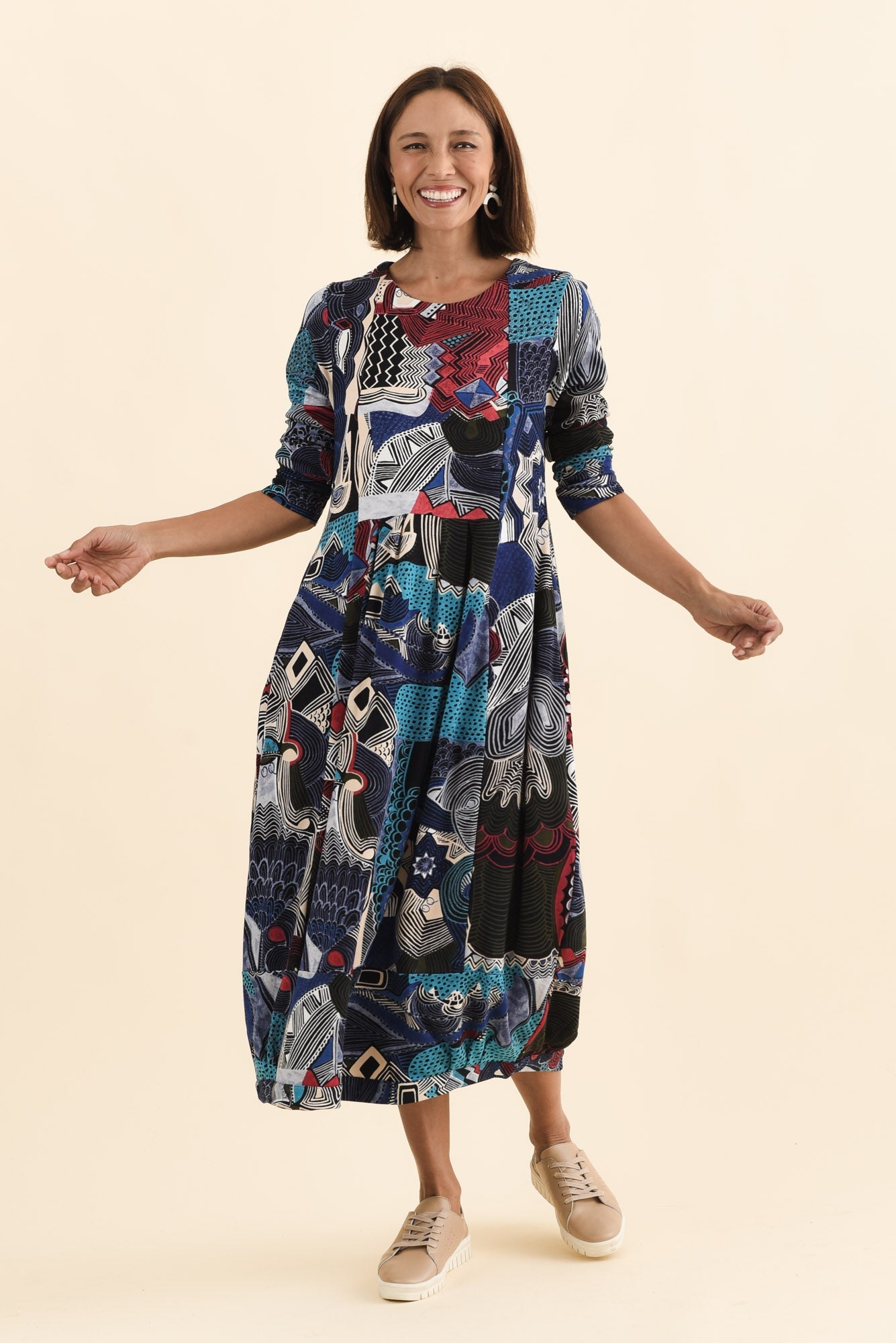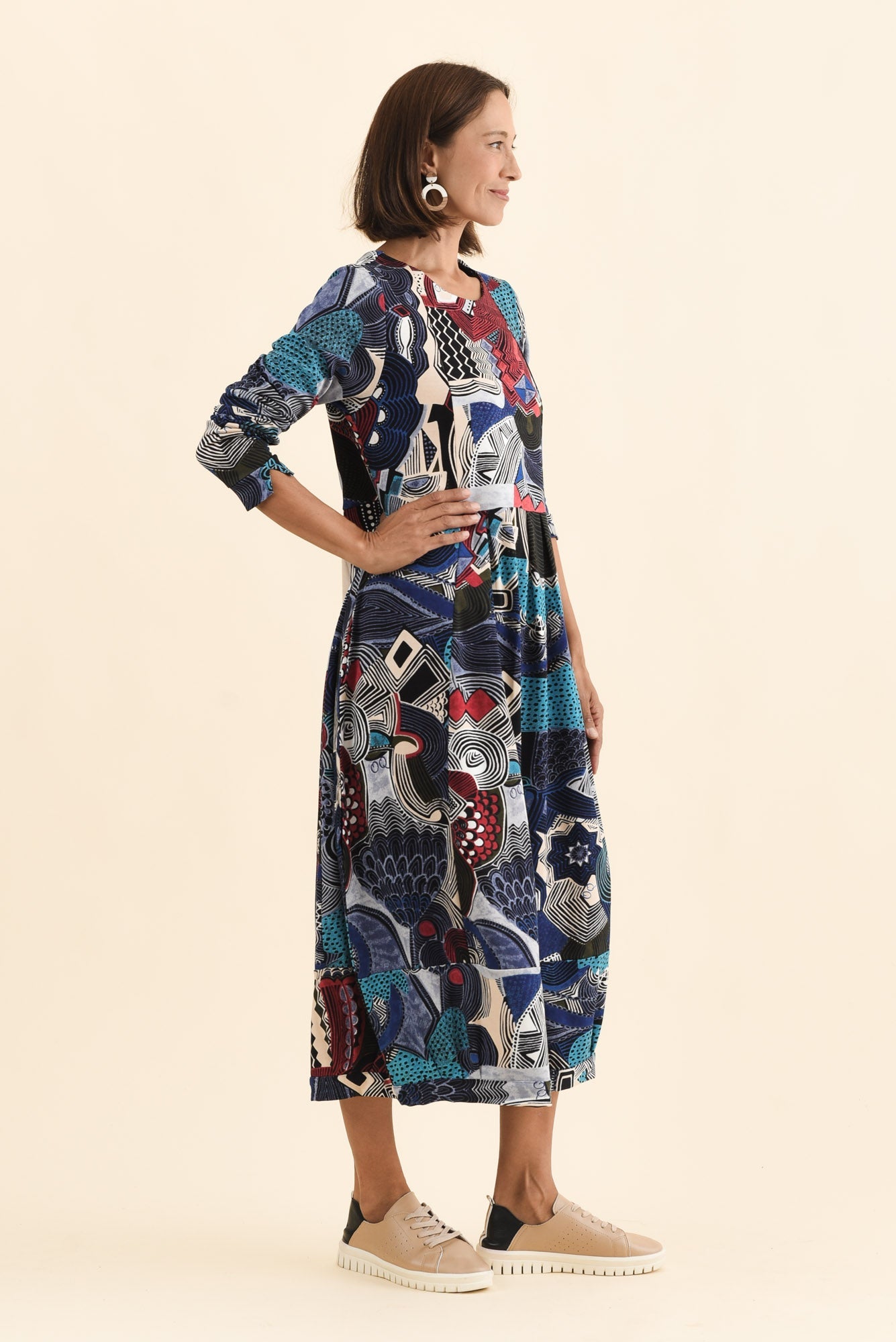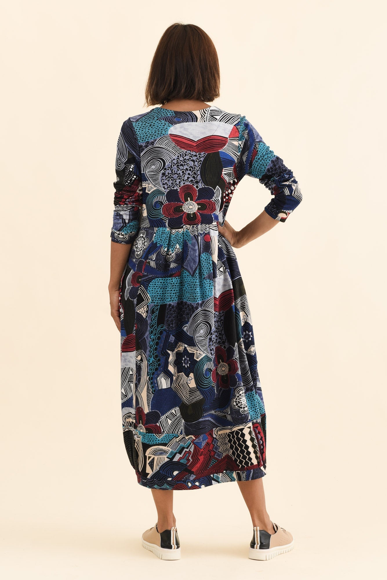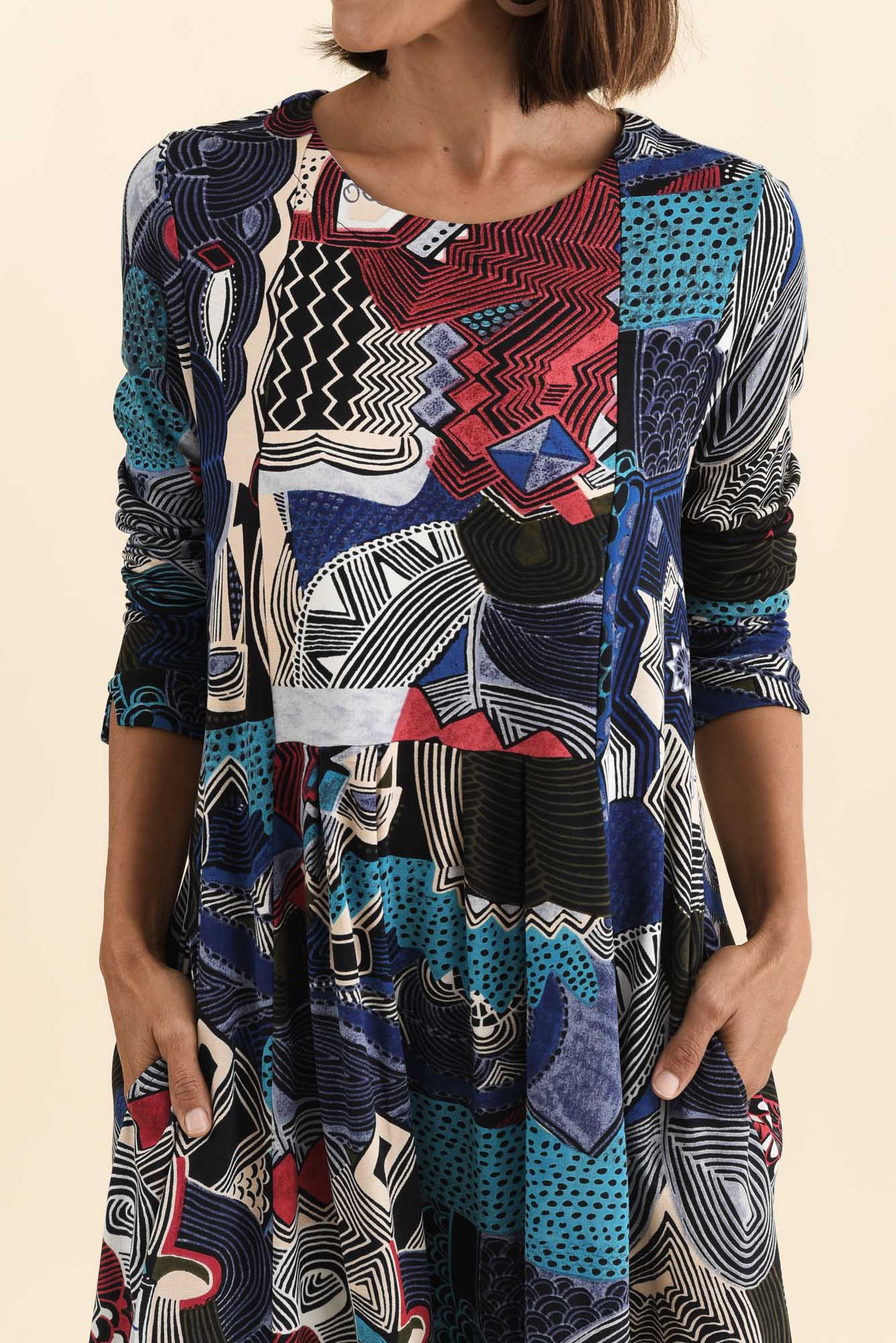 Estie Blue Abstract Pocket Midi Dress