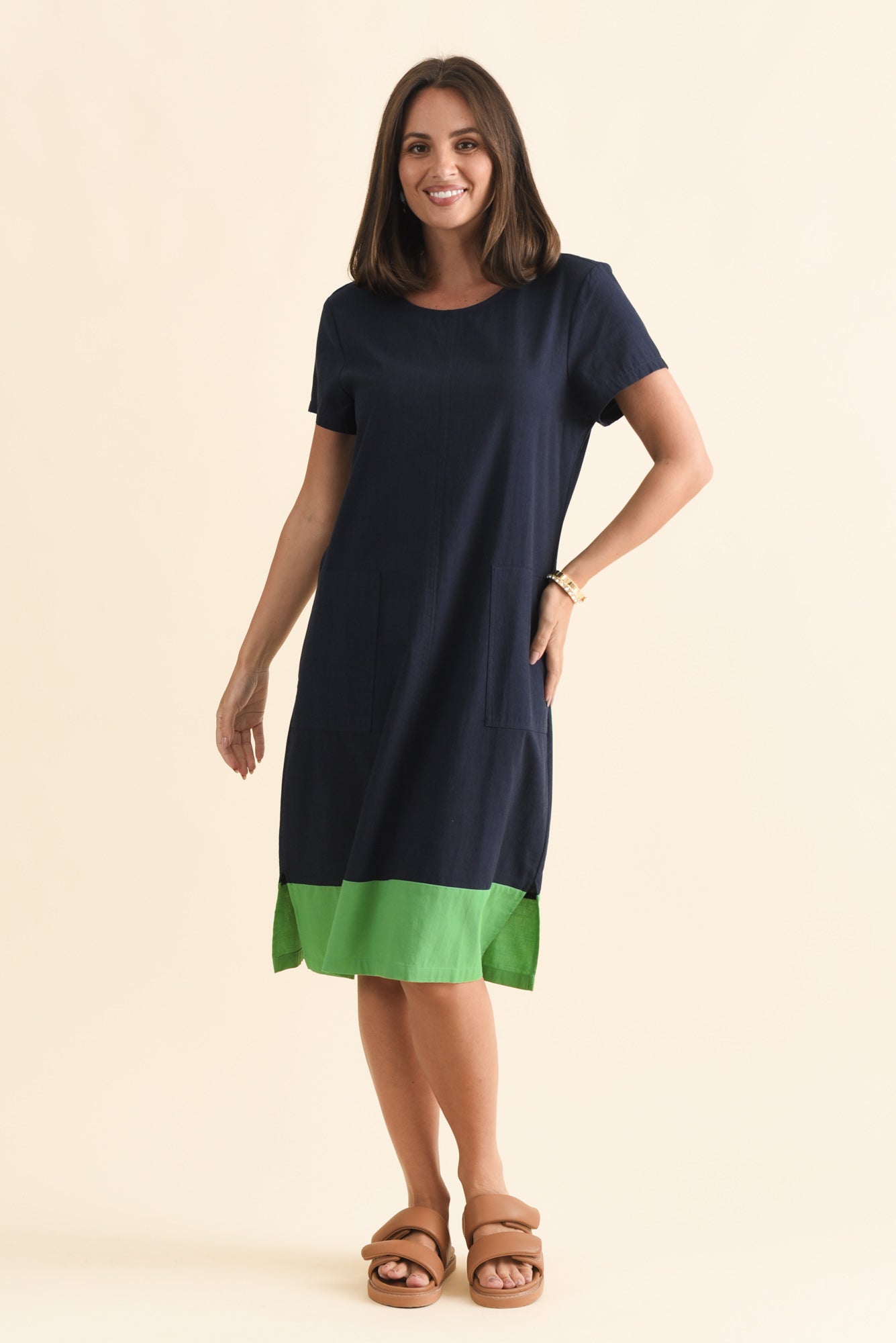 ETTY NAVY SPLICE COTTON BLEND TEE DRESS
