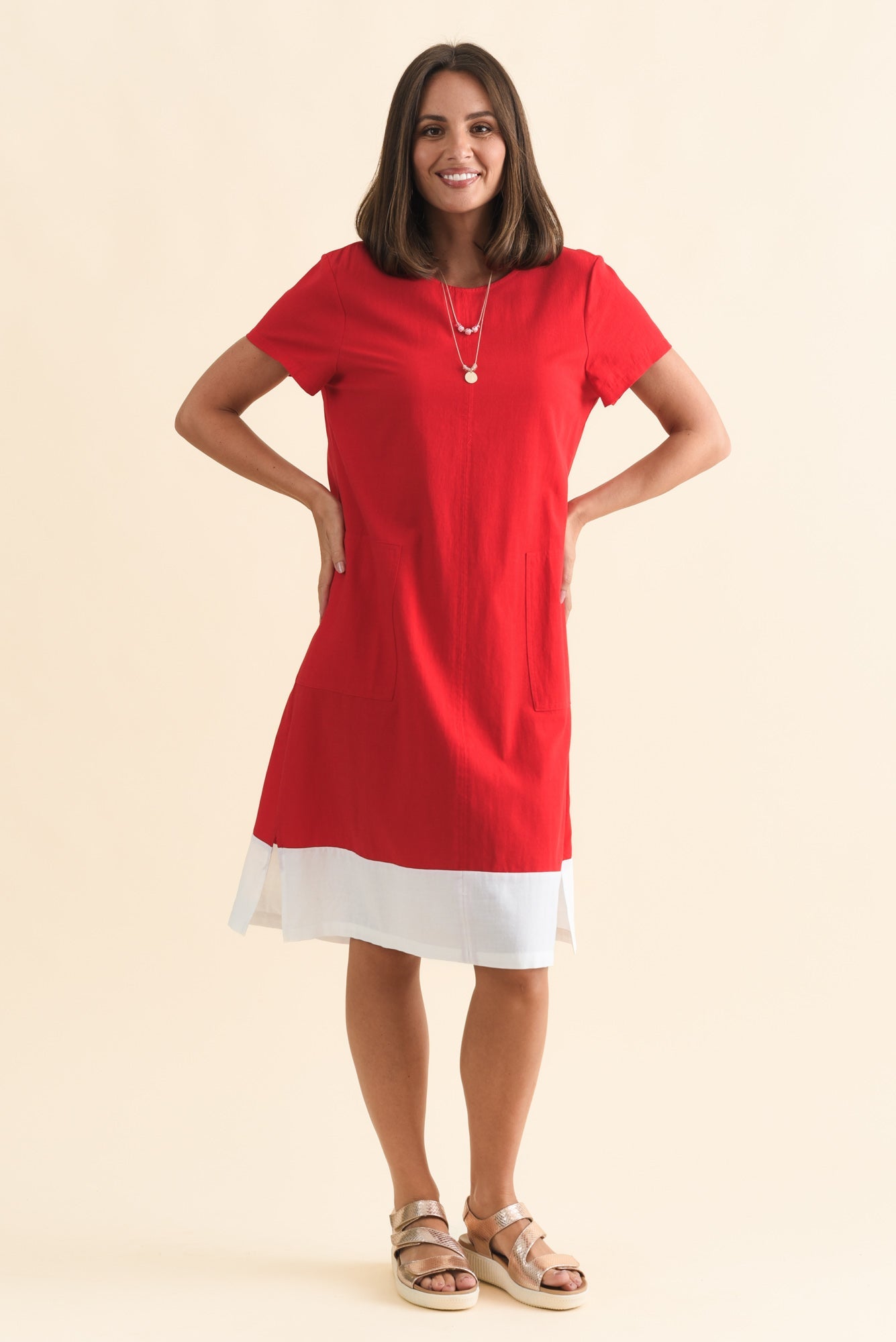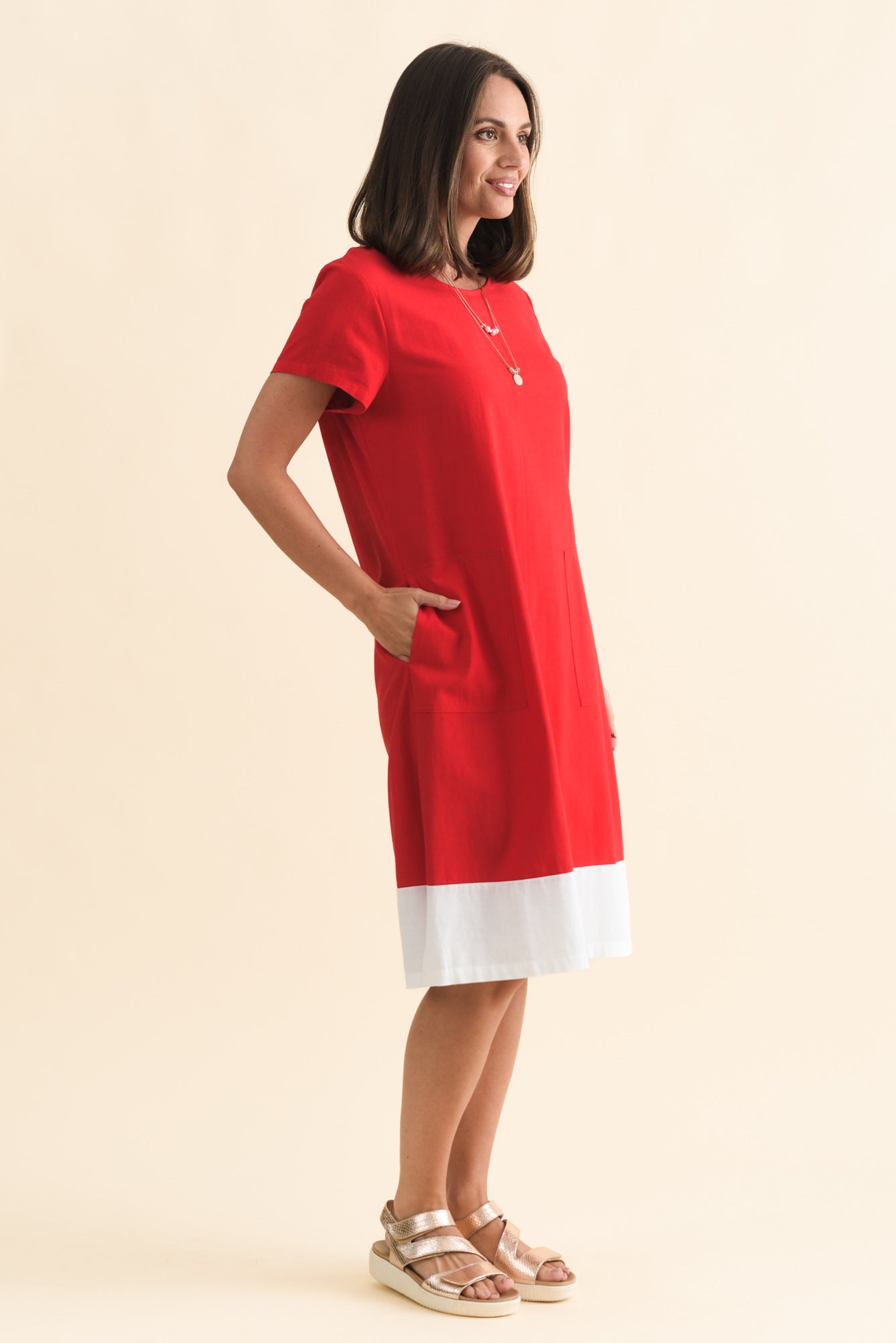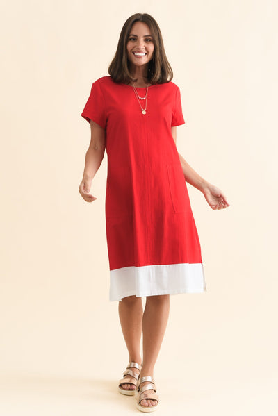 Etty Red Splice Cotton Blend Tee Dress image 1
