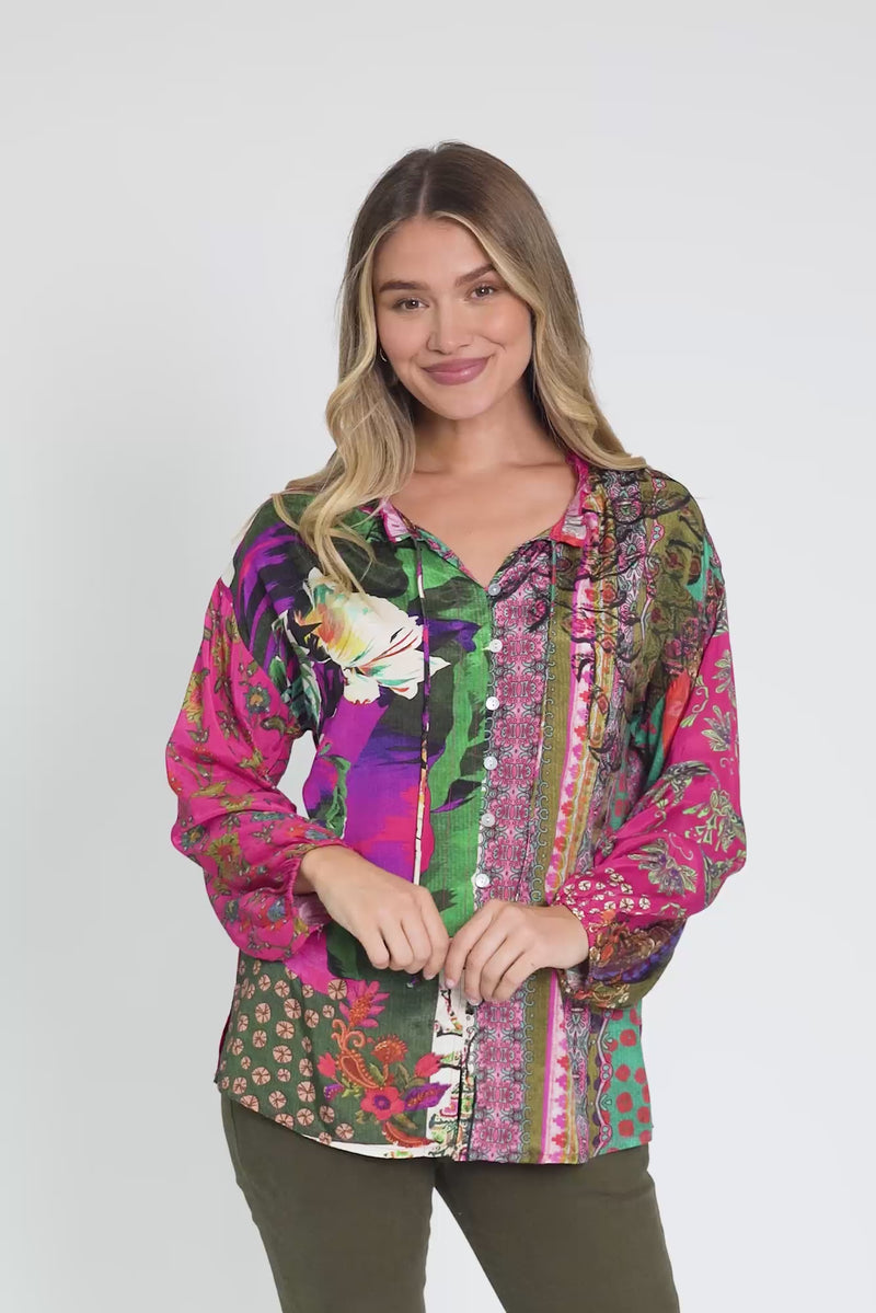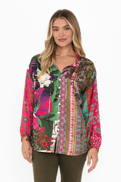 Fable Pink Floral Button Blouse