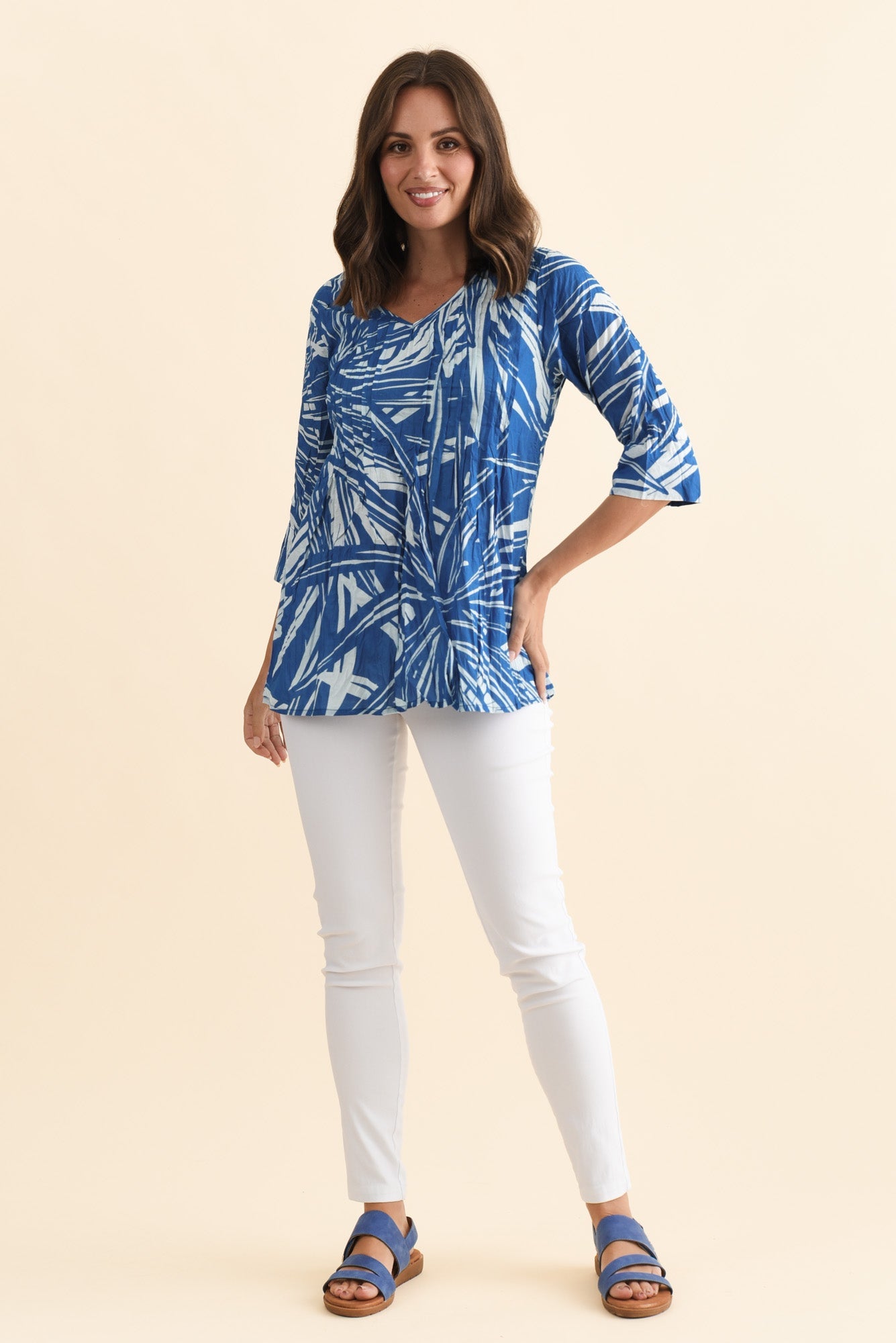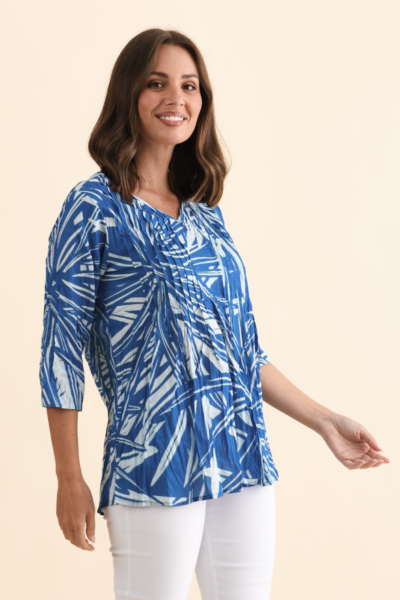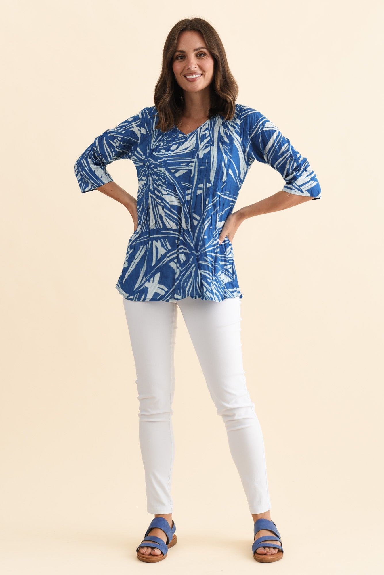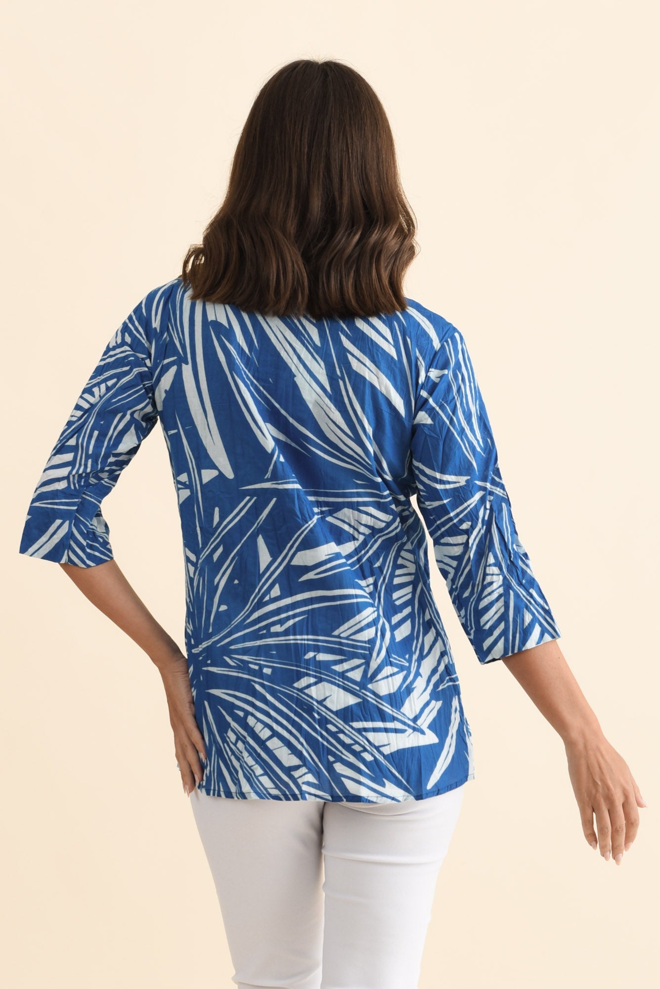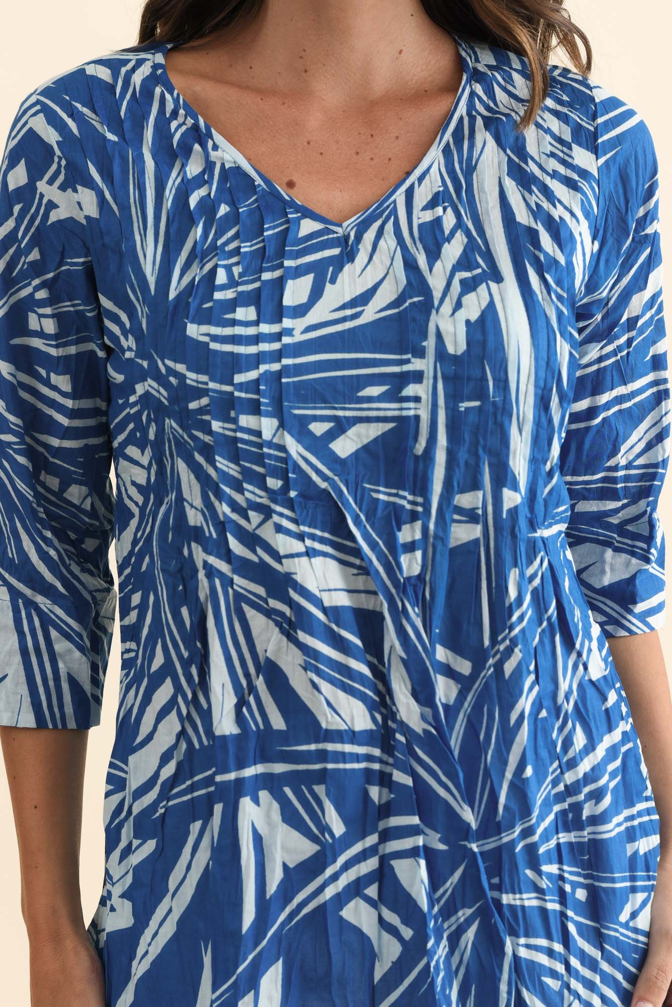 Fia Cobalt Burst Sleeved Crinkle Cotton Top