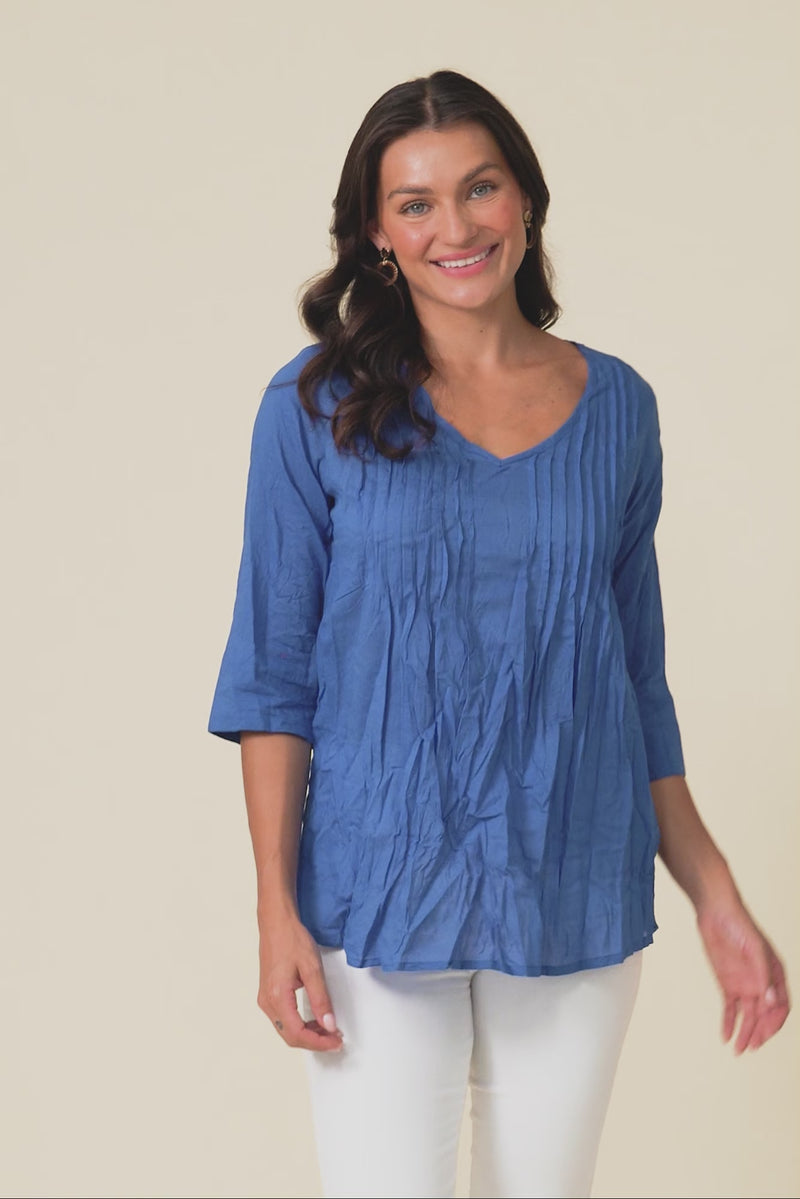 Fia Cobalt Sleeved Crinkle Cotton Top