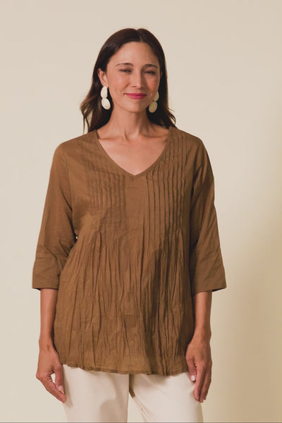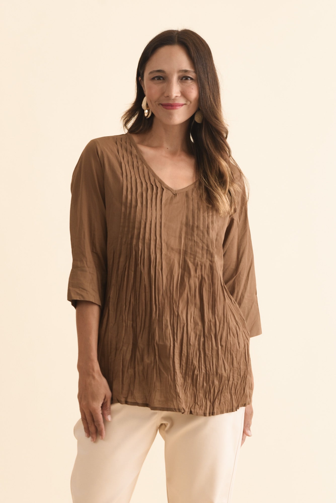 FIA MOCHA SLEEVED CRINKLE COTTON TOP