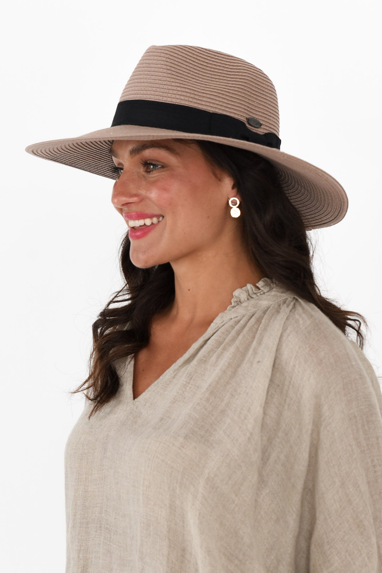 Fiona Taupe Wide Brim Travel Fedora