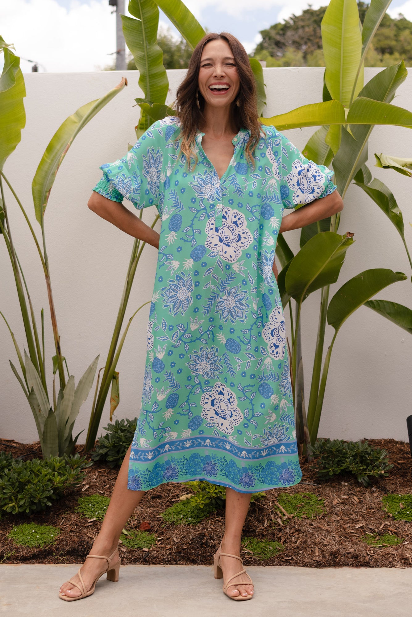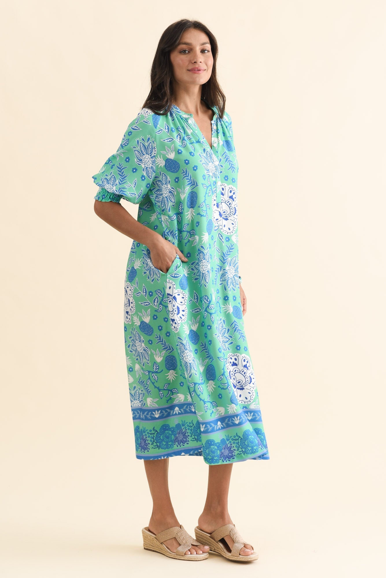 FONDA GREEN FLORAL MIDI DRESS
