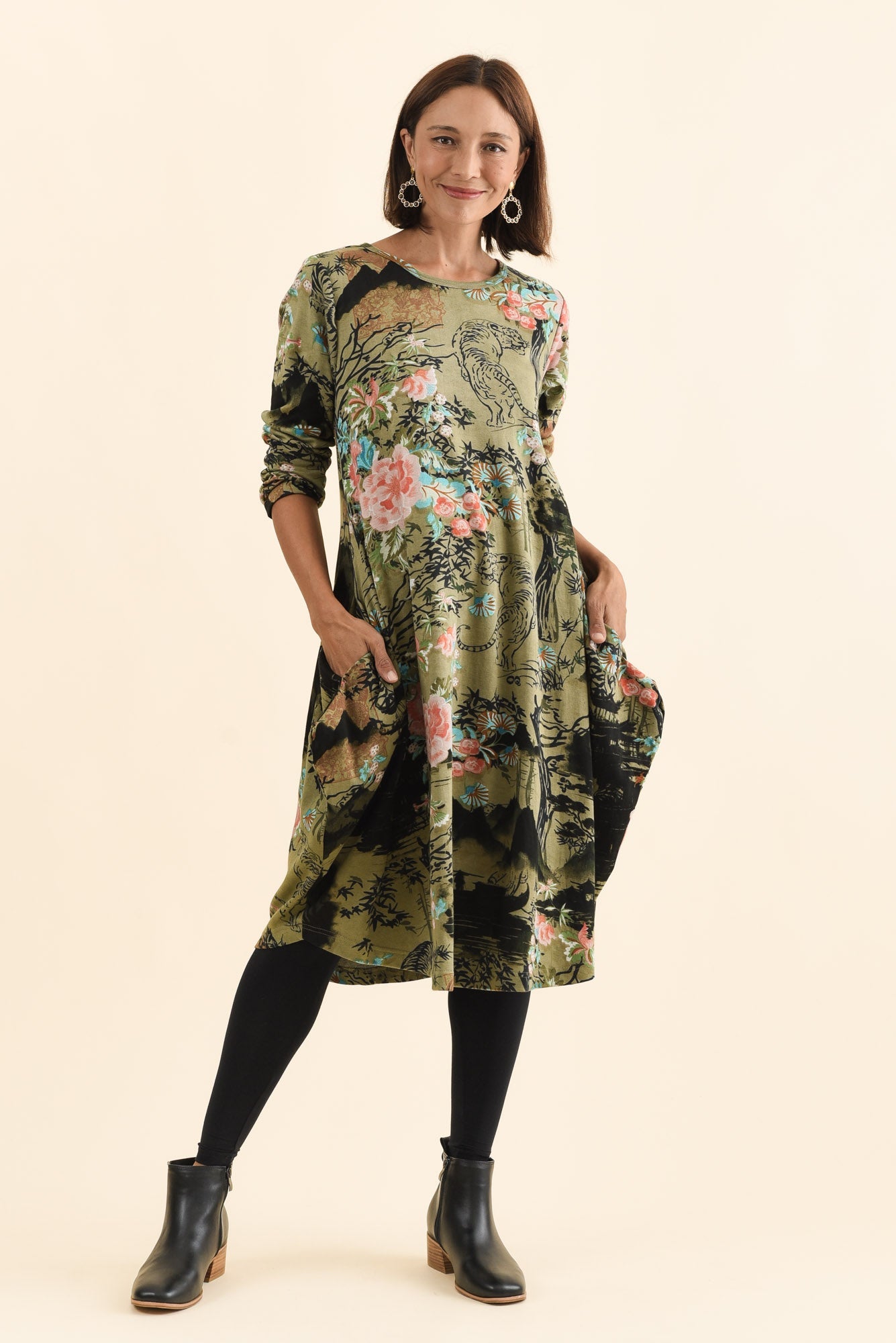 Fonte Olive Blossom Cotton Knit Dress
