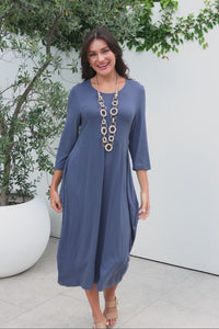 Glenda Blue Sleeved Crescent Dress