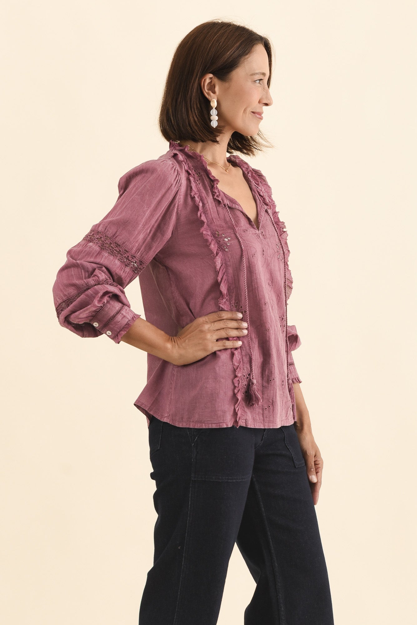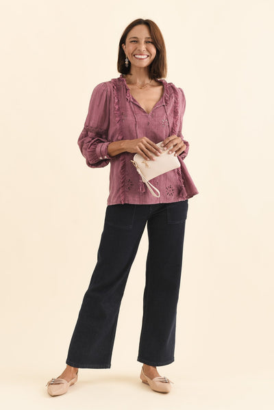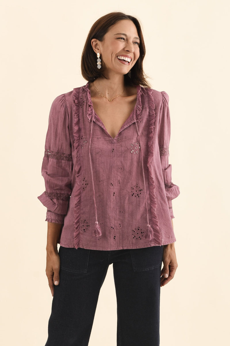 Gloria Dark Pink Embroidered Cotton Top