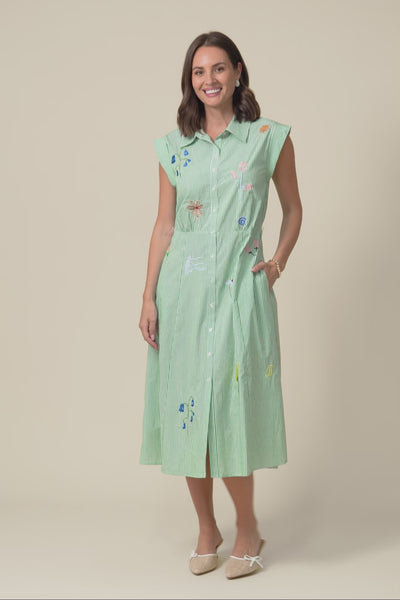 Gloria Green Stripe Cotton Tie Dress