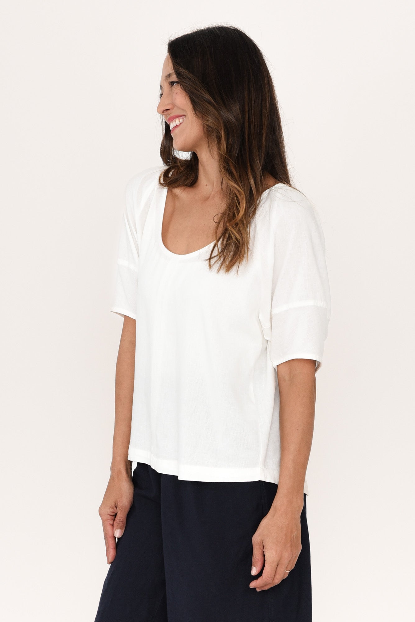 GROVE WHITE LINEN BLEND TOP