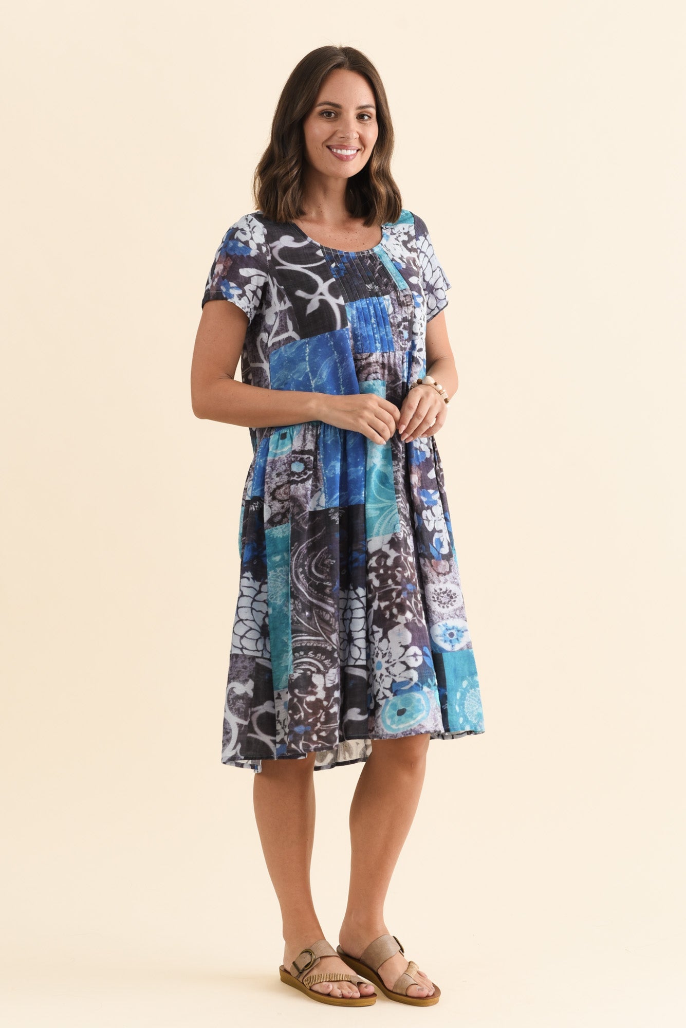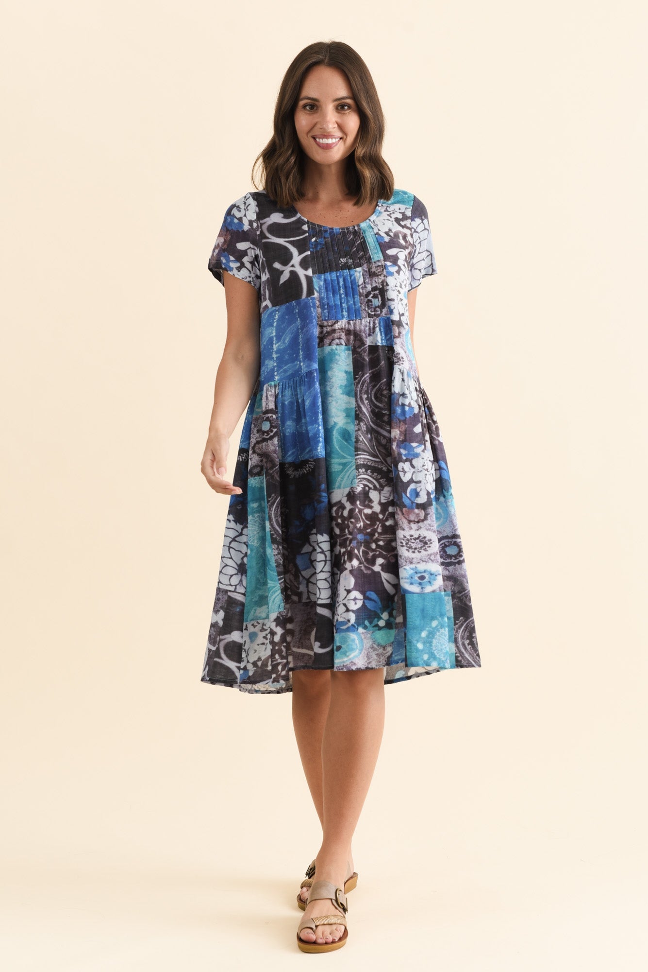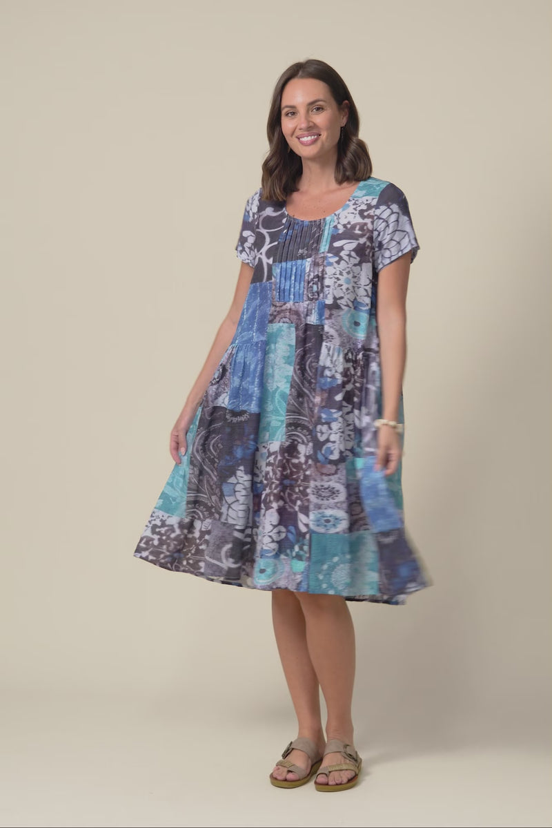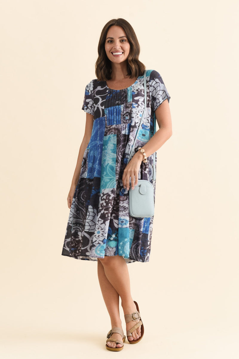 Hanoi Blue Patchwork Cotton Blend Dress