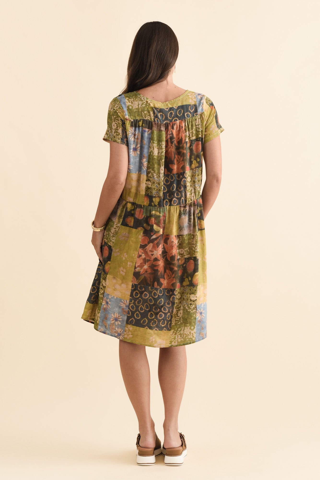 Hanoi Green Mosaic Cotton Blend Dress