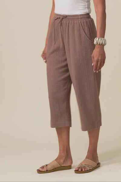 Harvey Mocha Cotton Cheesecloth Cropped Pants