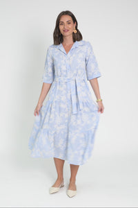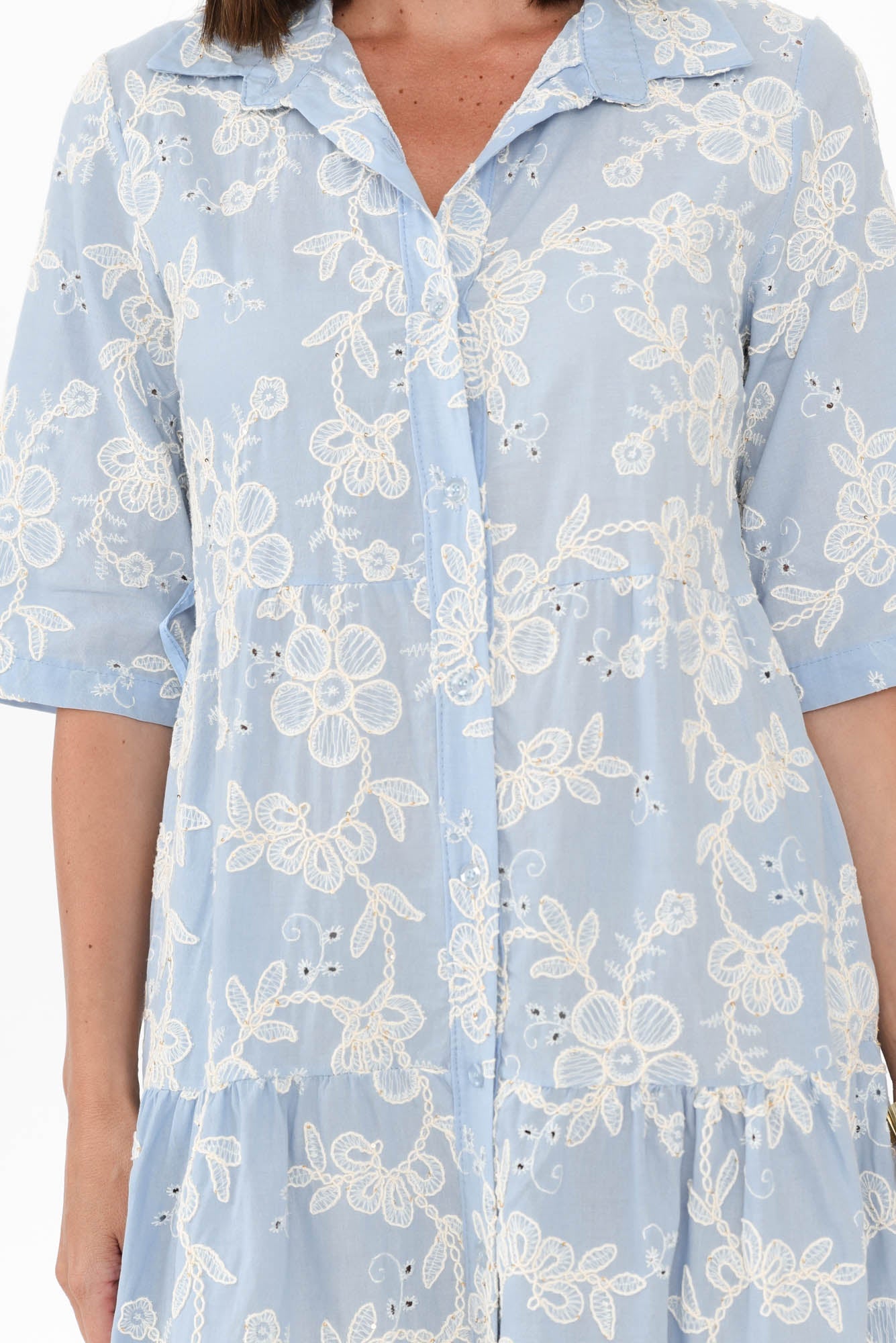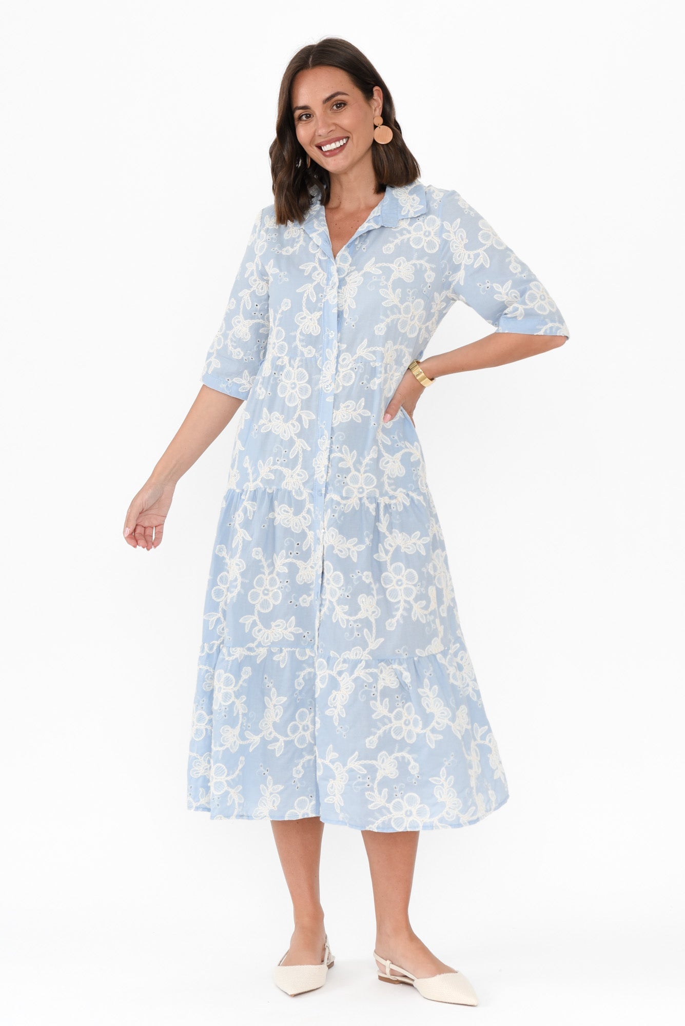 HEIDI BLUE FLORAL EMBROIDERED COTTON DRESS