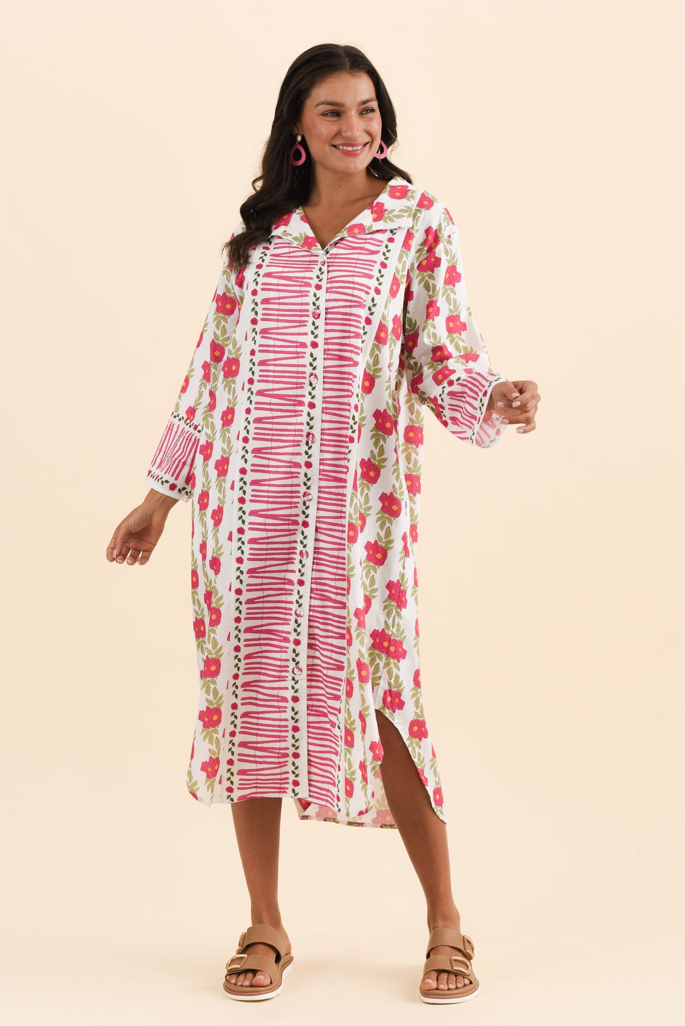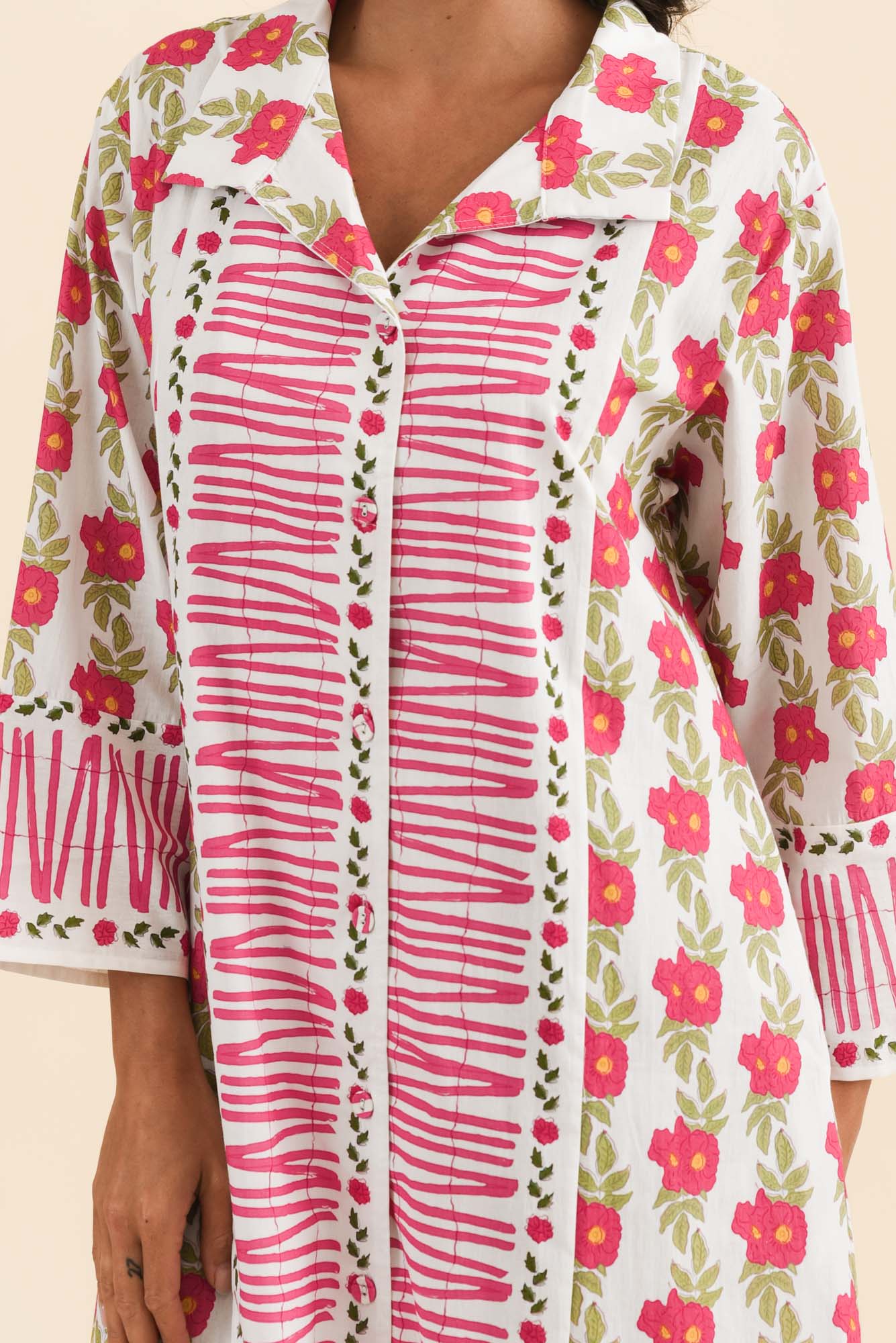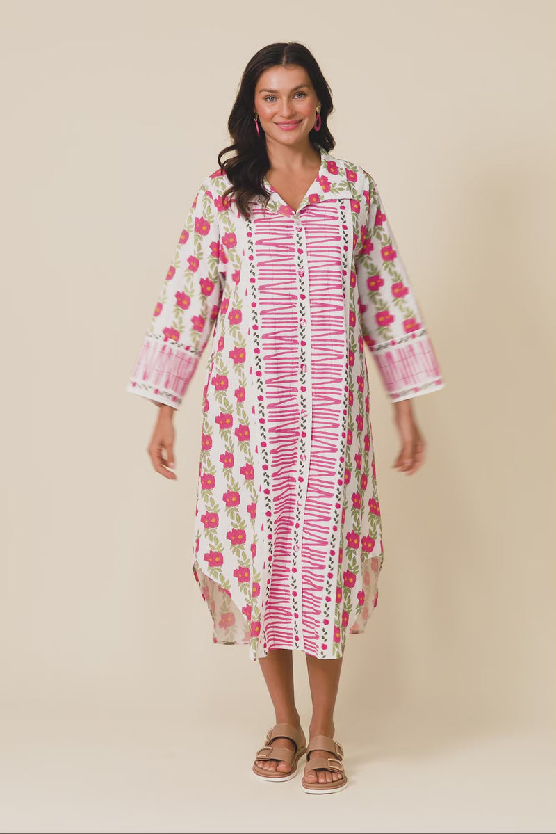ILENA PINK FLORAL COTTON SHIRT DRESS