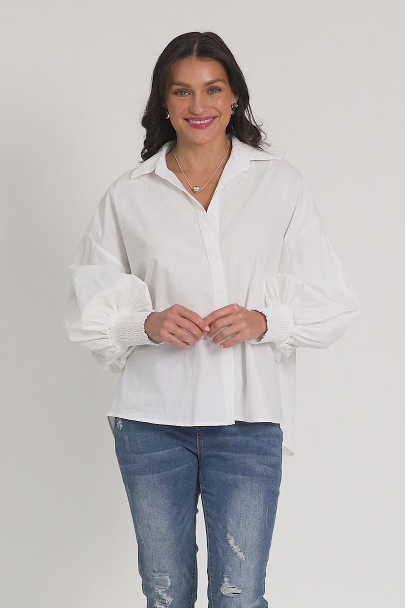 IONA WHITE COTTON PUFF SLEEVE SHIRT