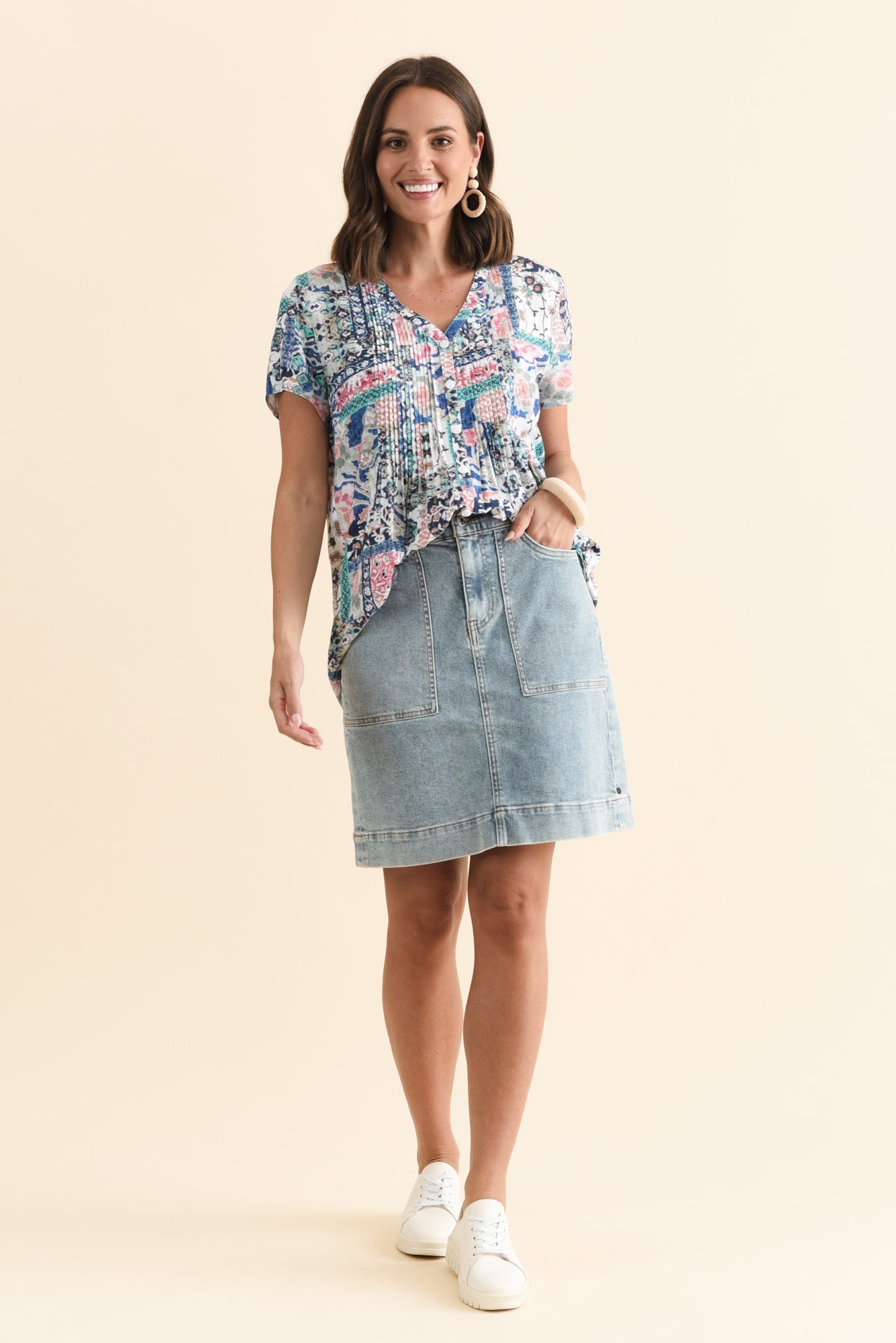 Isobel Blue Mosaic Button Top
