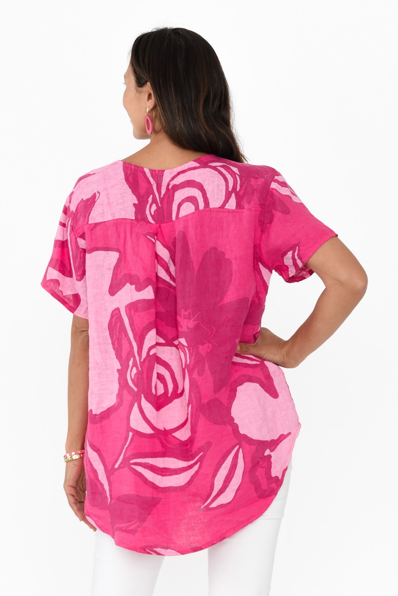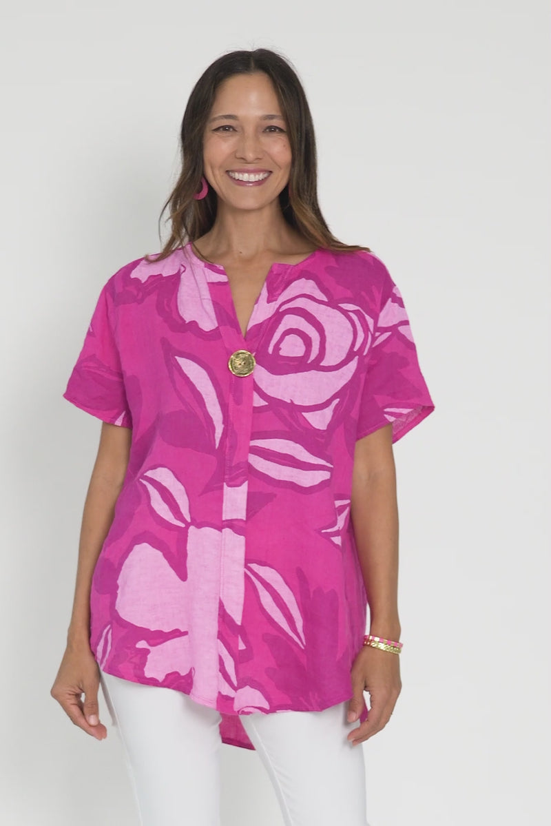 Ivanna Fuchsia Flower Linen Top