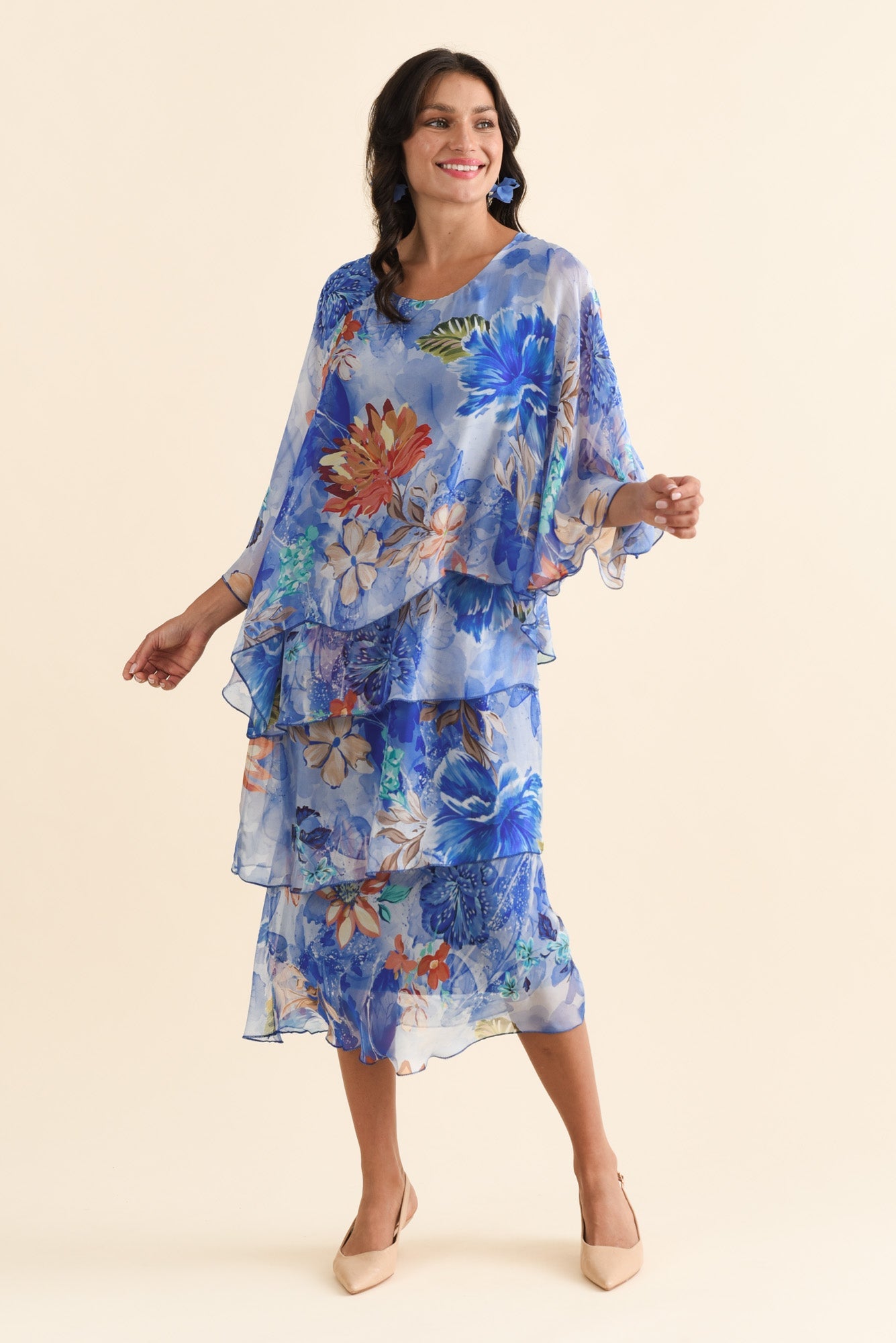 JASMINE BLUE FLORAL SILK LAYER DRESS