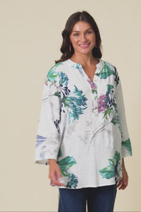 JULIET WHITE FLORAL COTTON LINEN TOP