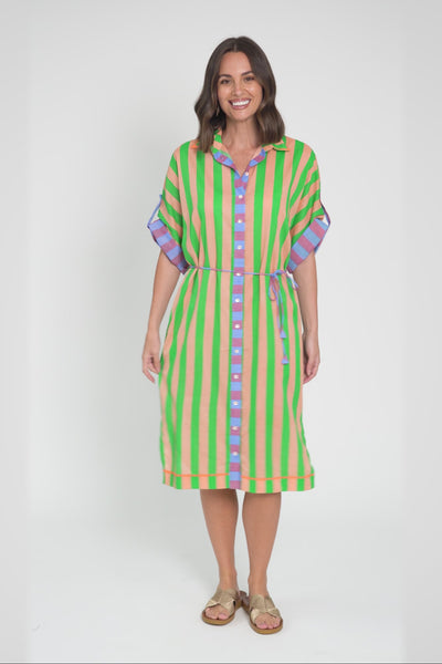 KALINDA GREEN STRIPE COTTON SHIRT DRESS