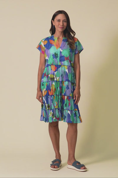 KAYLEE BLUE FLOWER CRINKLE COTTON DRESS