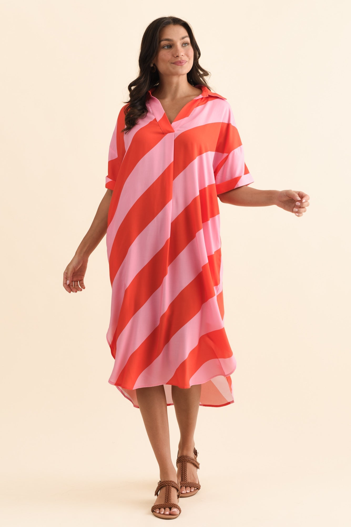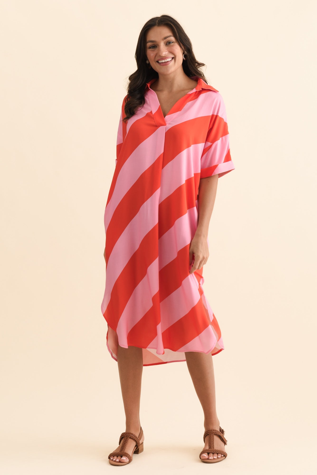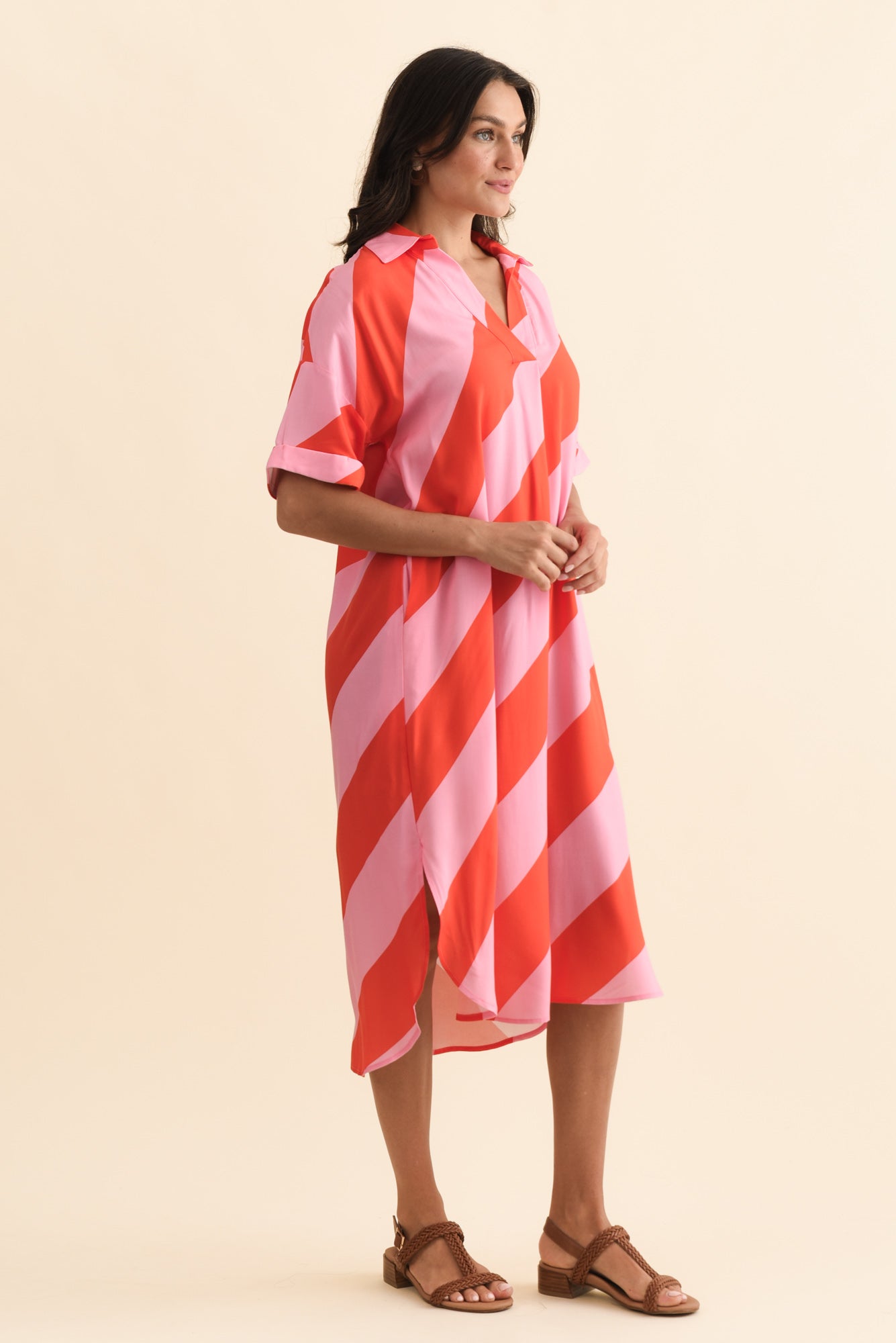 Kazi Pink Stripe Shirt Dress
