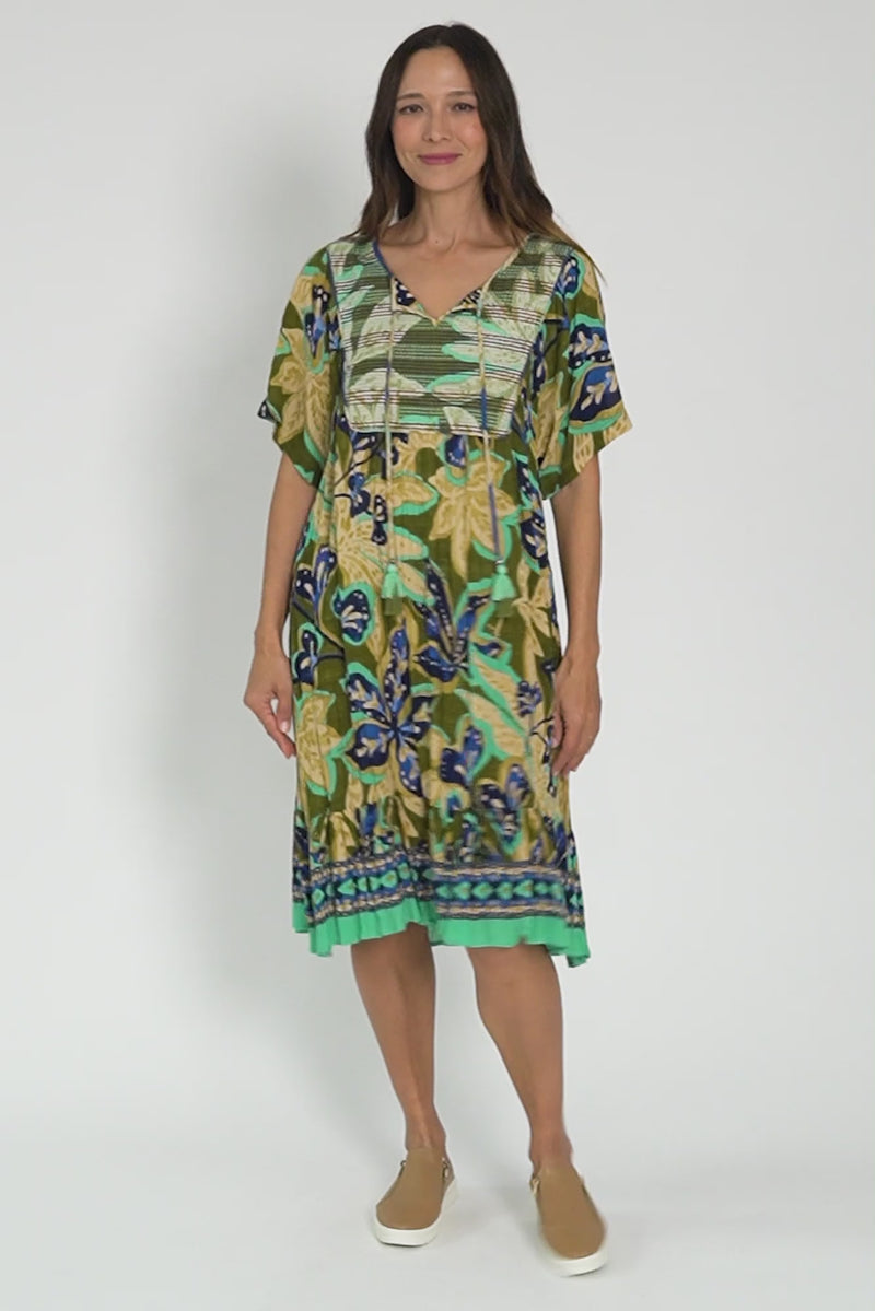 KENNEDY GREEN FLORAL TASSEL DRESS