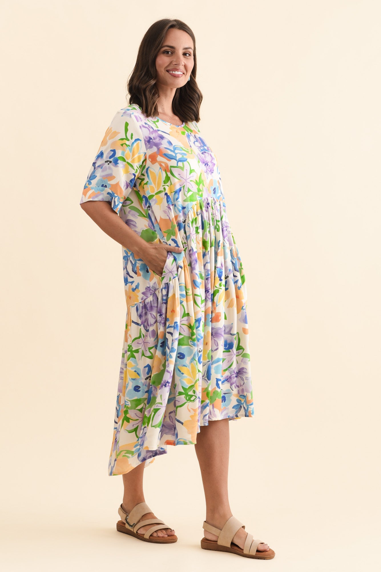 The garment is laid flat to be measured, we then double measurements as needed to show circumference.