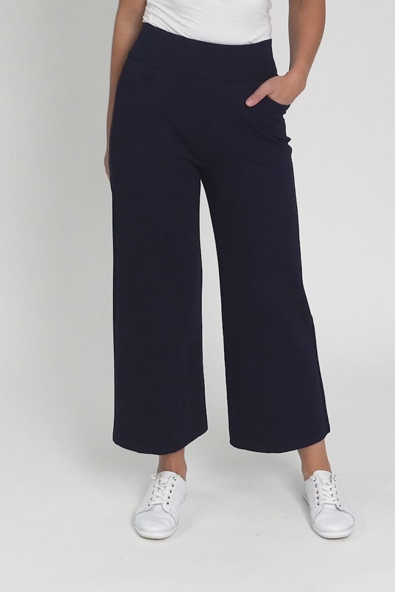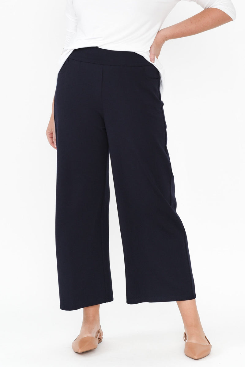 Kimmy Navy Wide Leg Ponte Pants length_Cropped rise_Mid print_Plain colour_Navy PANTS    alt text|model:Valeria image 7