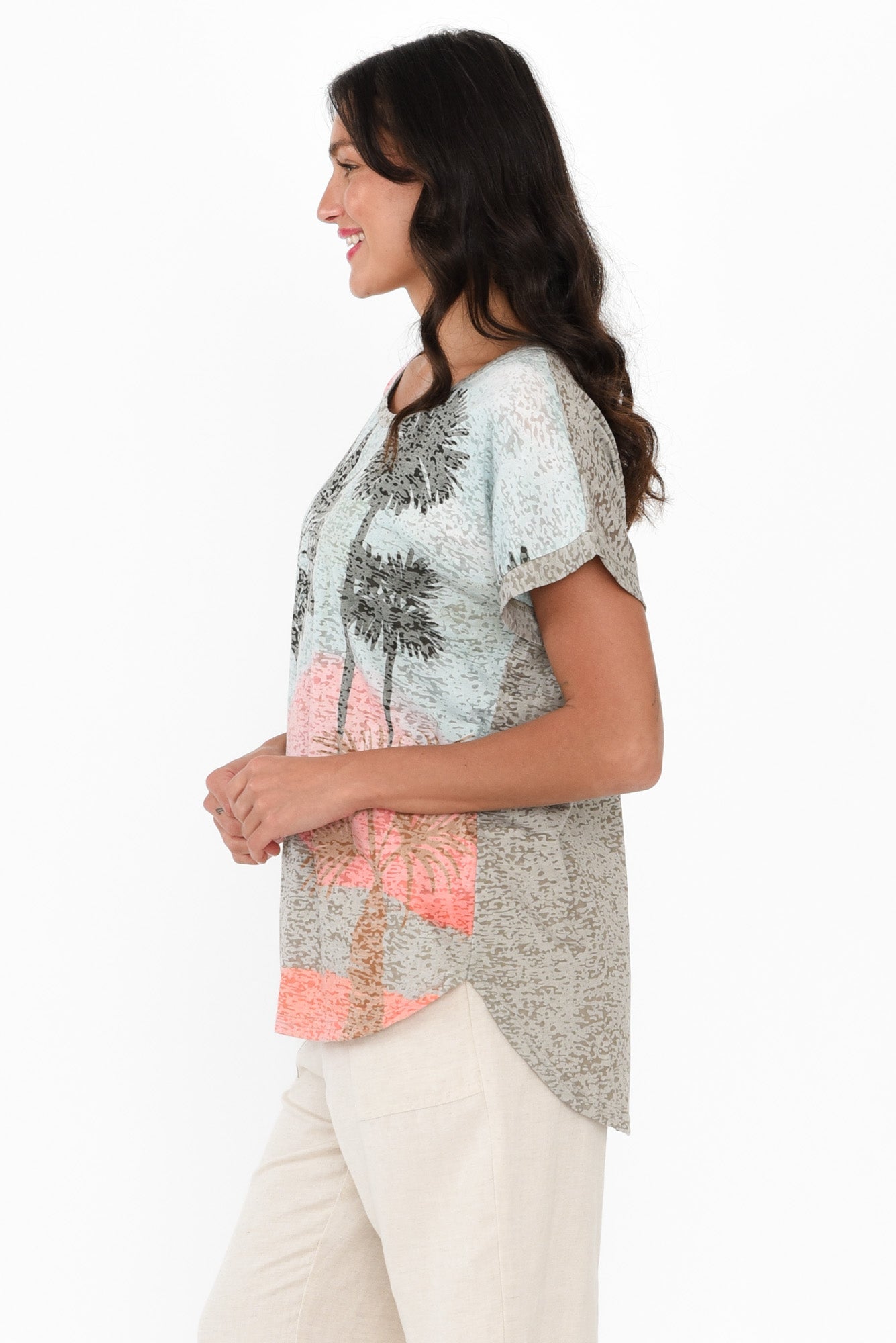 LAINEY KHAKI PALM COTTON BLEND TEE