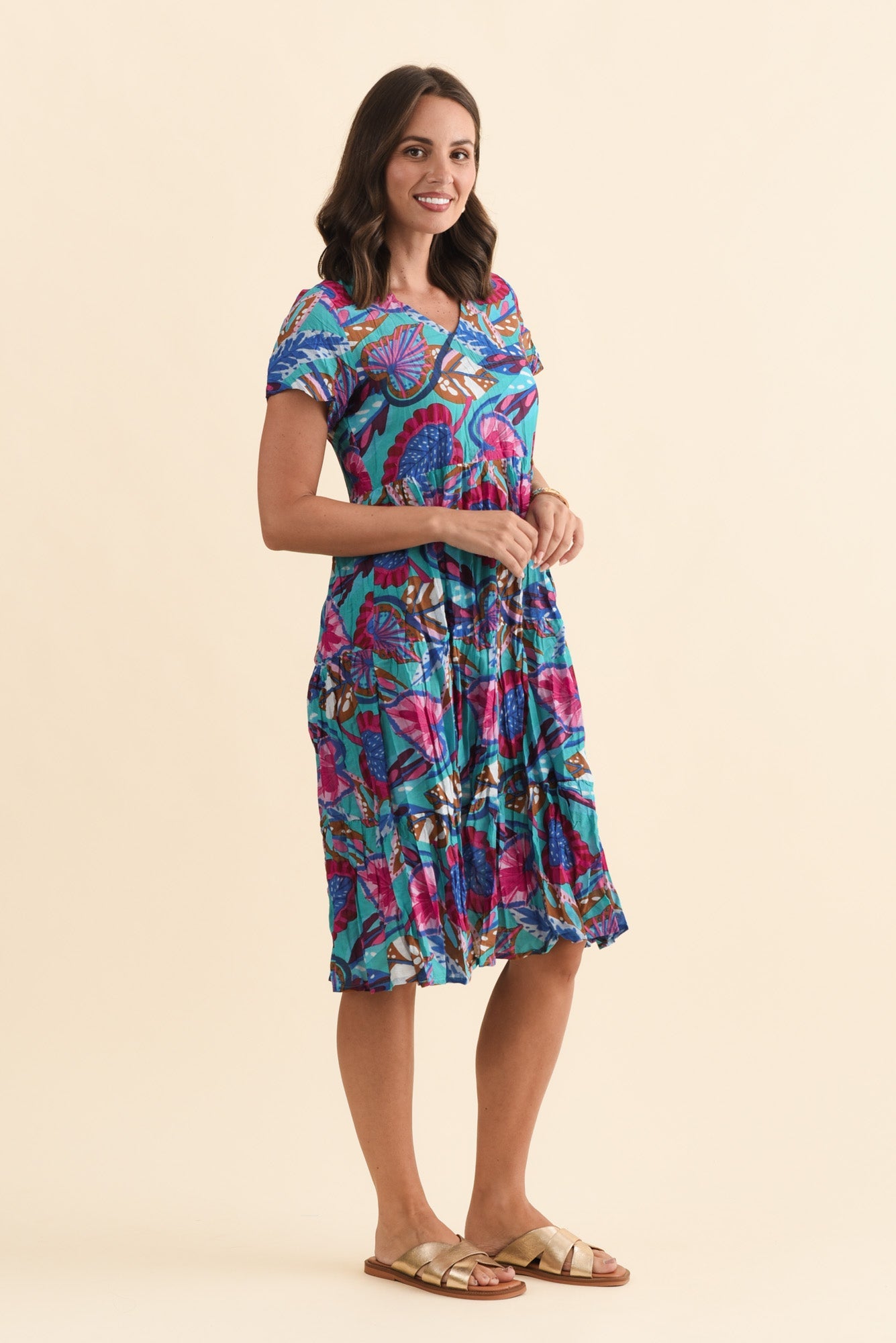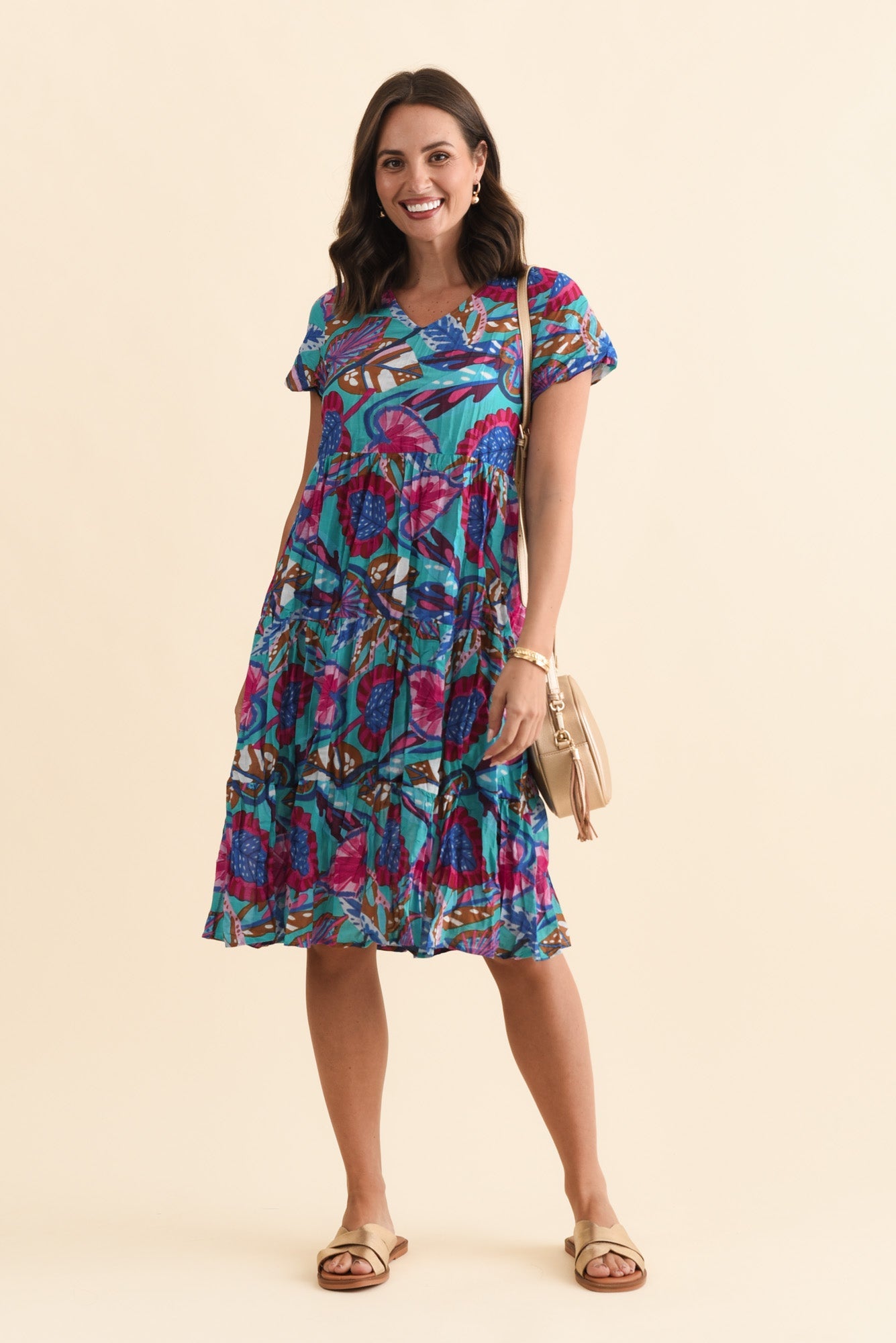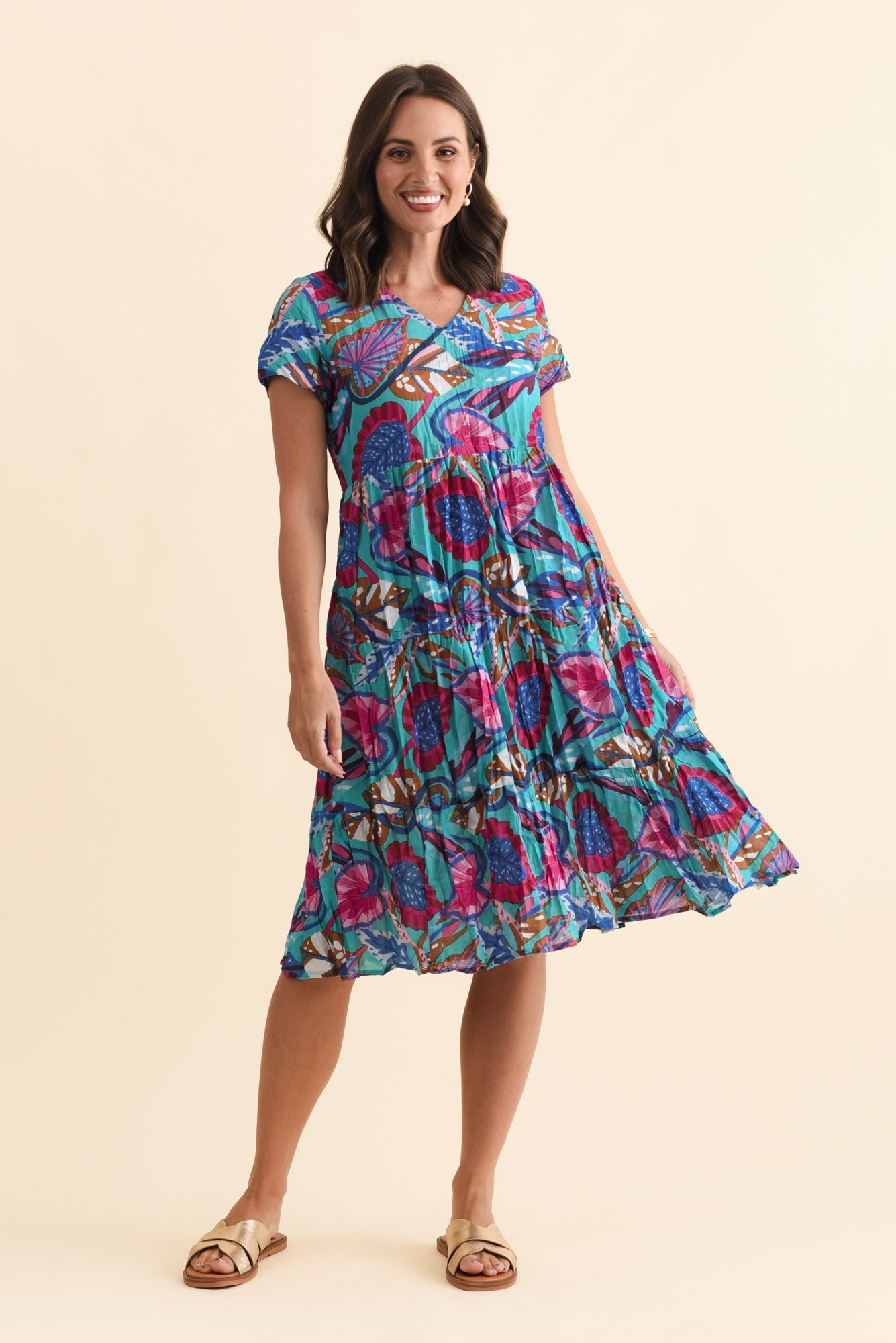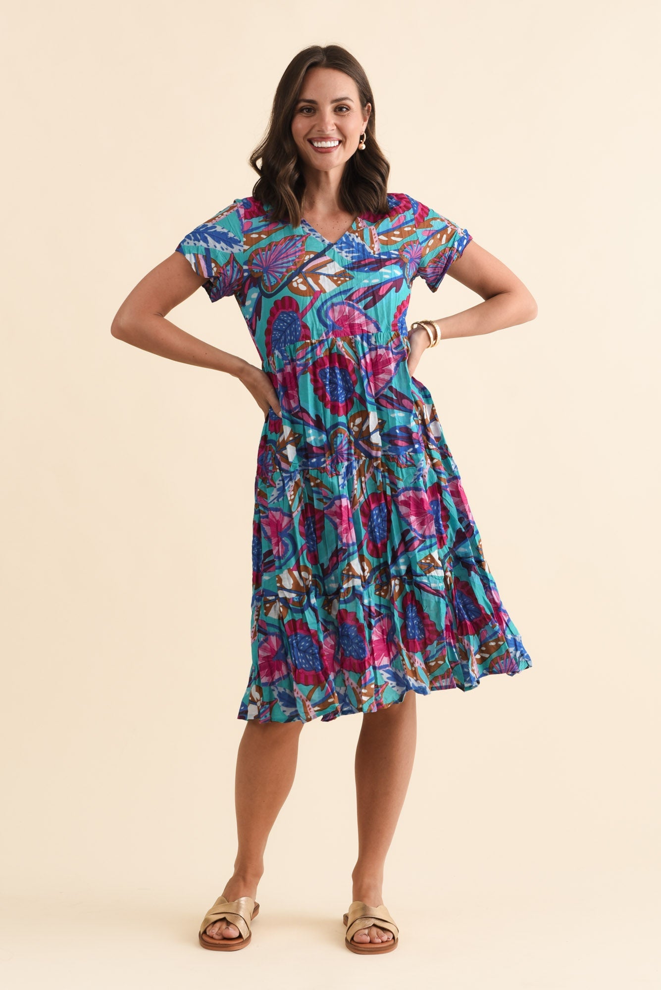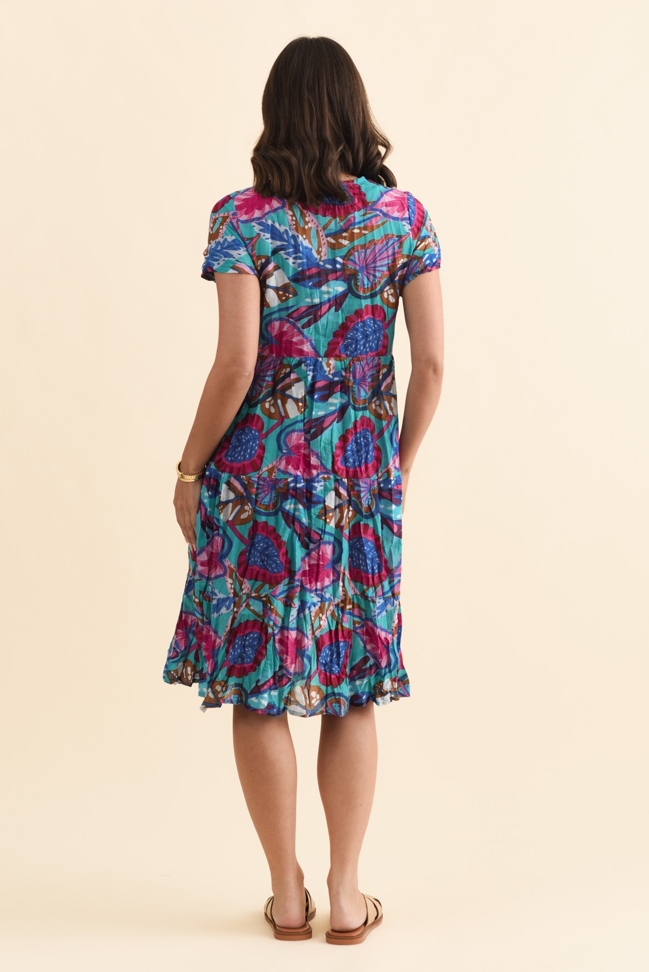 Lania Cobalt Tropical Crinkle Cotton Dress
