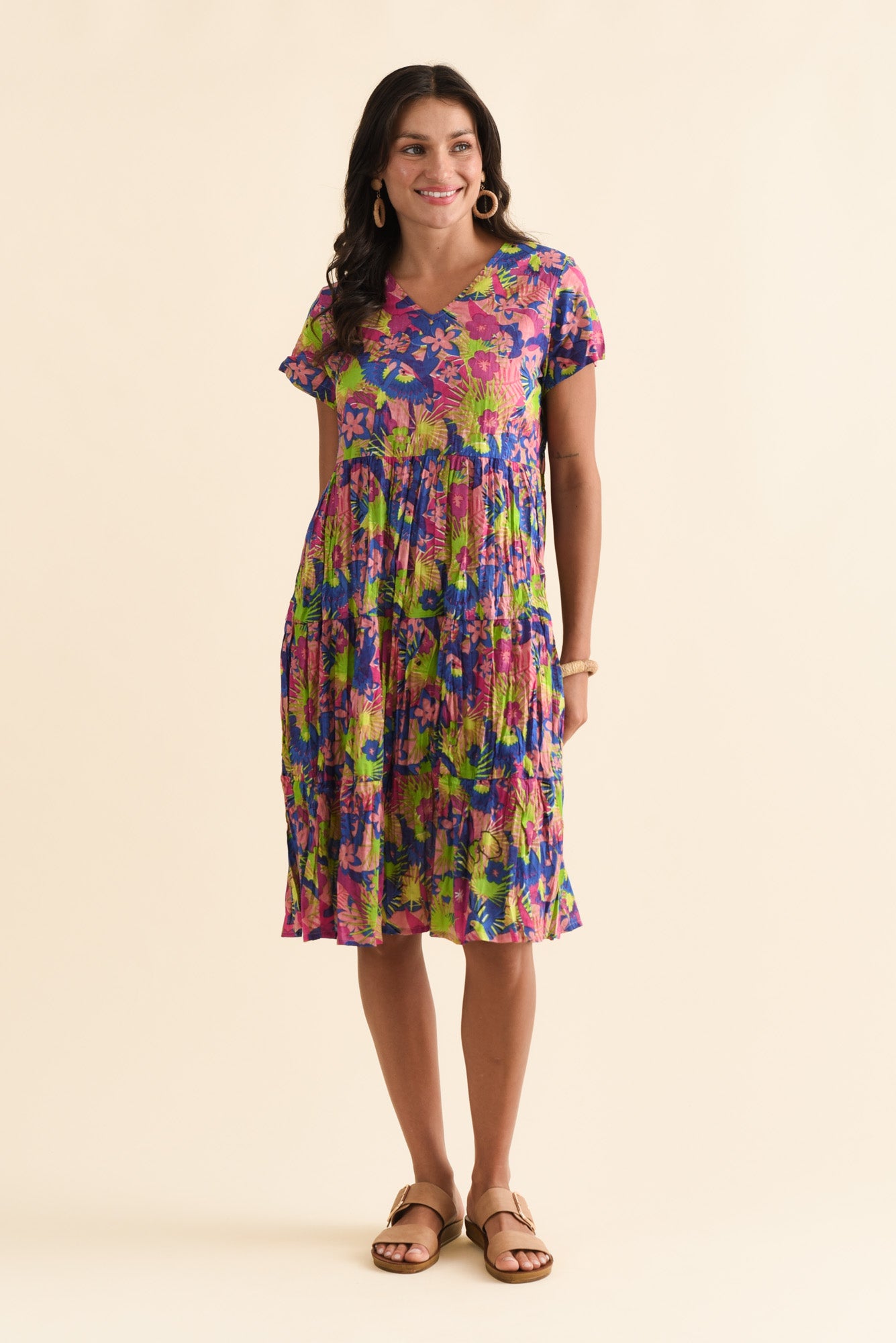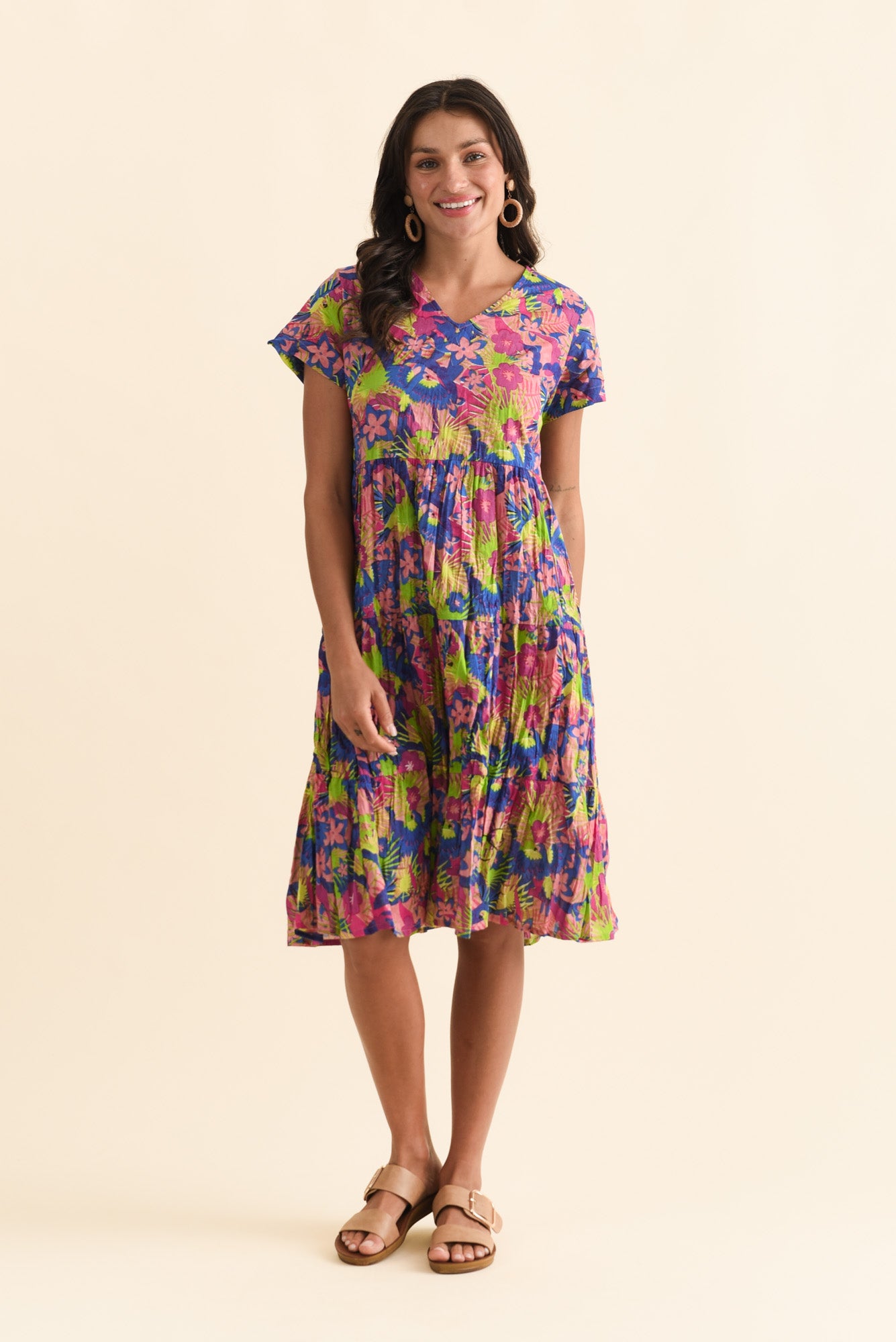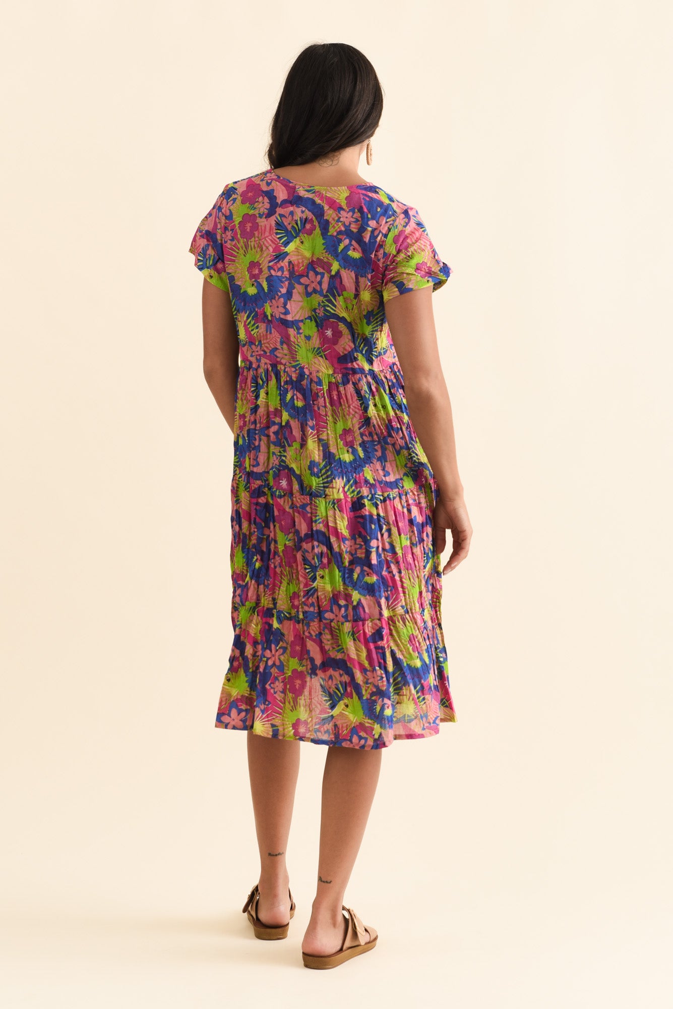 Embrace nature-inspired charm crafted from an ultra-lightweight crinkle cotton, this dress is comfortable, low-maintenance, and travel-friendly!