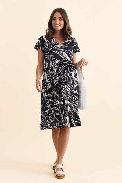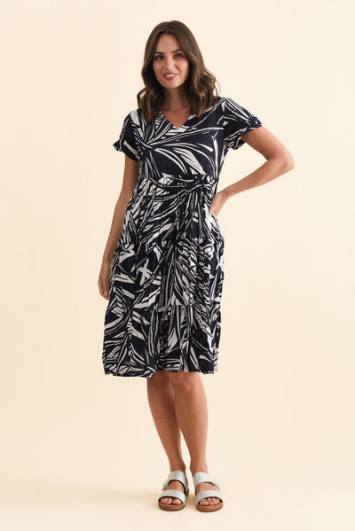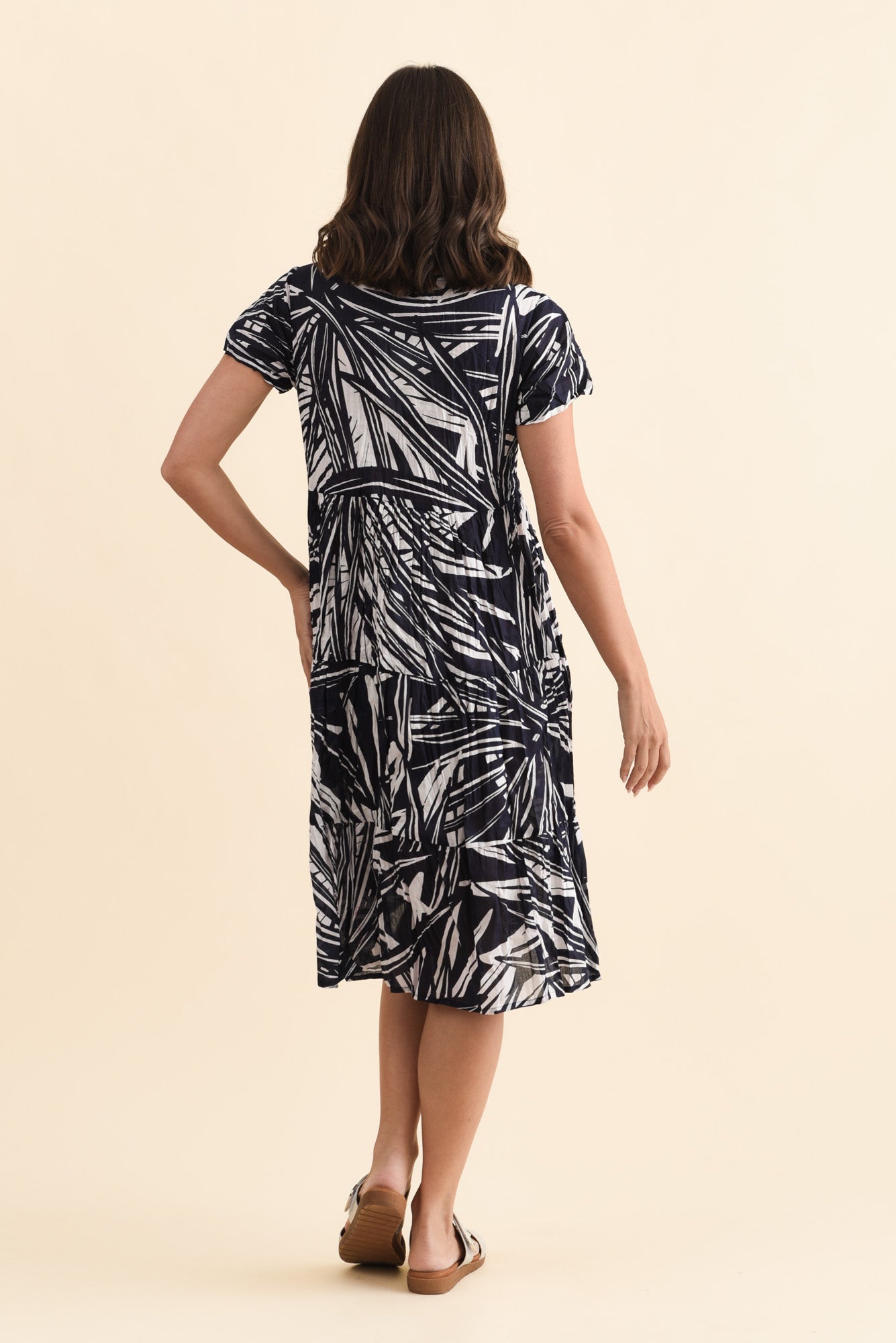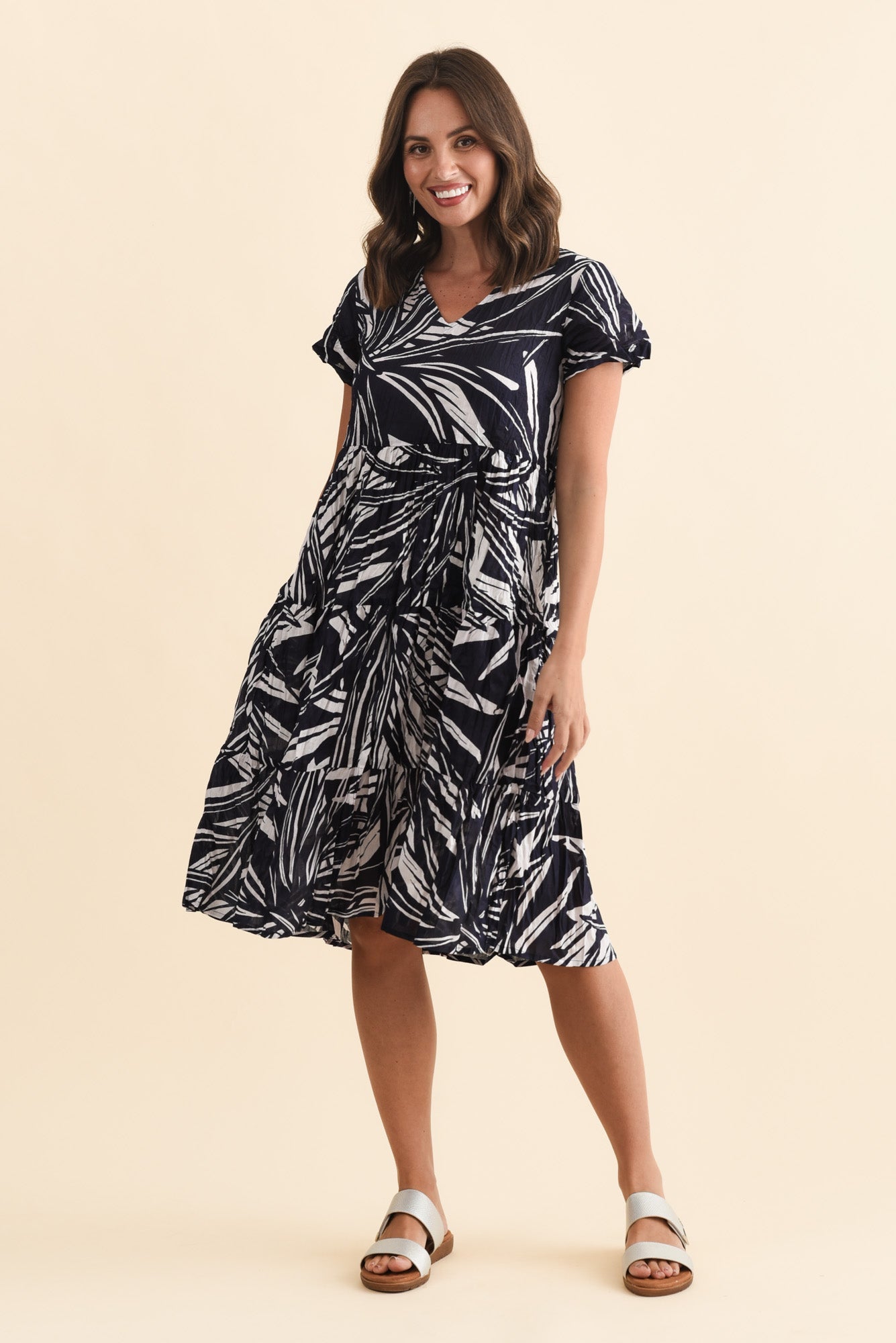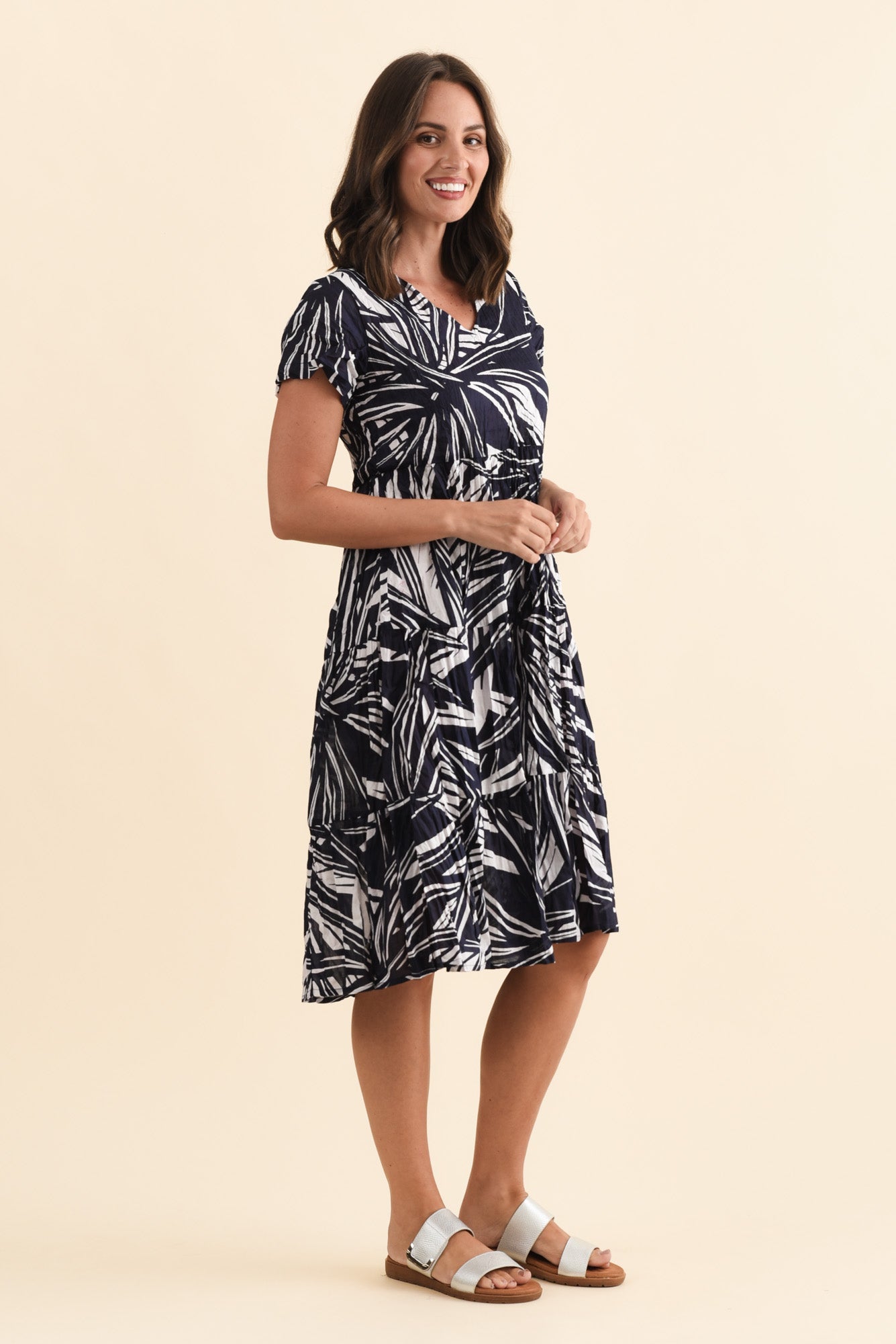 LANIA NAVY BURST CRINKLE COTTON DRESS