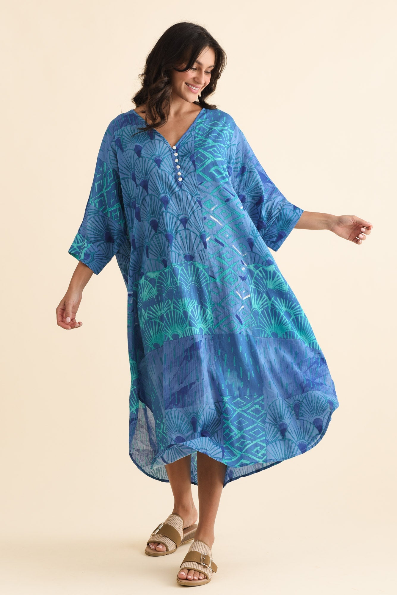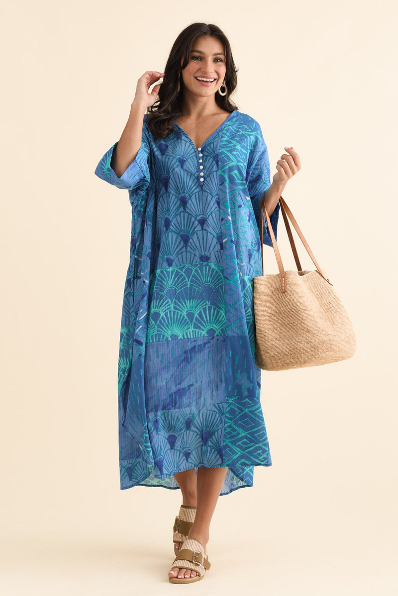 LAYLA COBALT MOTIF COTTON KAFTAN