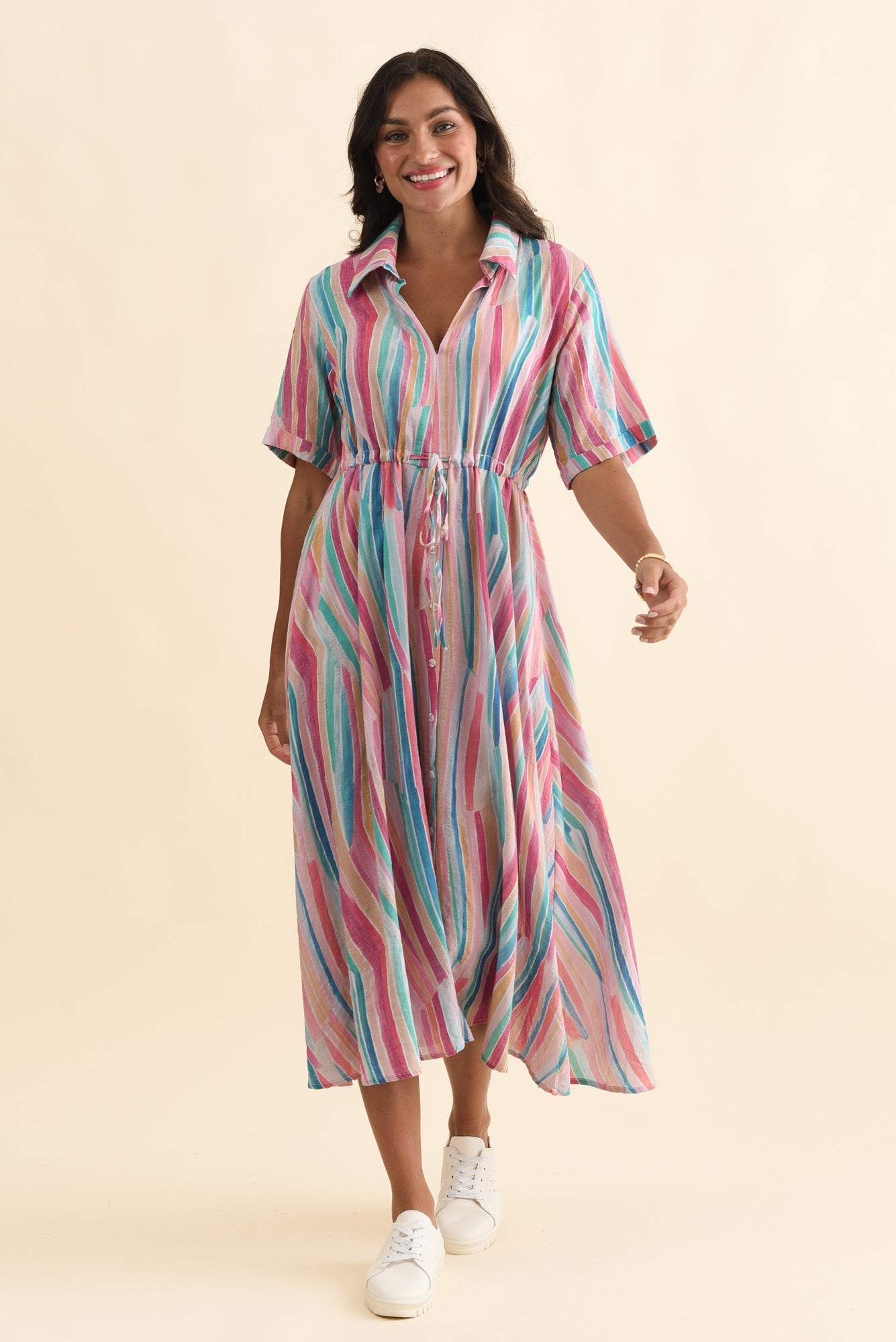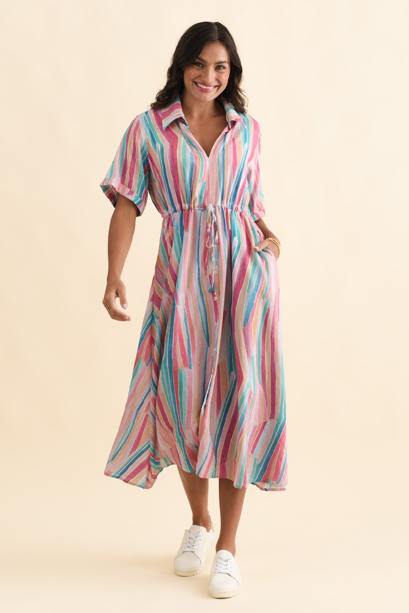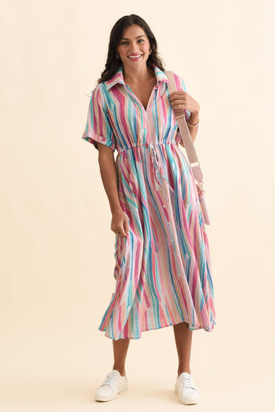 Leigh Pink Stripe Tie Dress