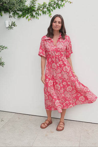 Leigh Red Flower Tie Dress