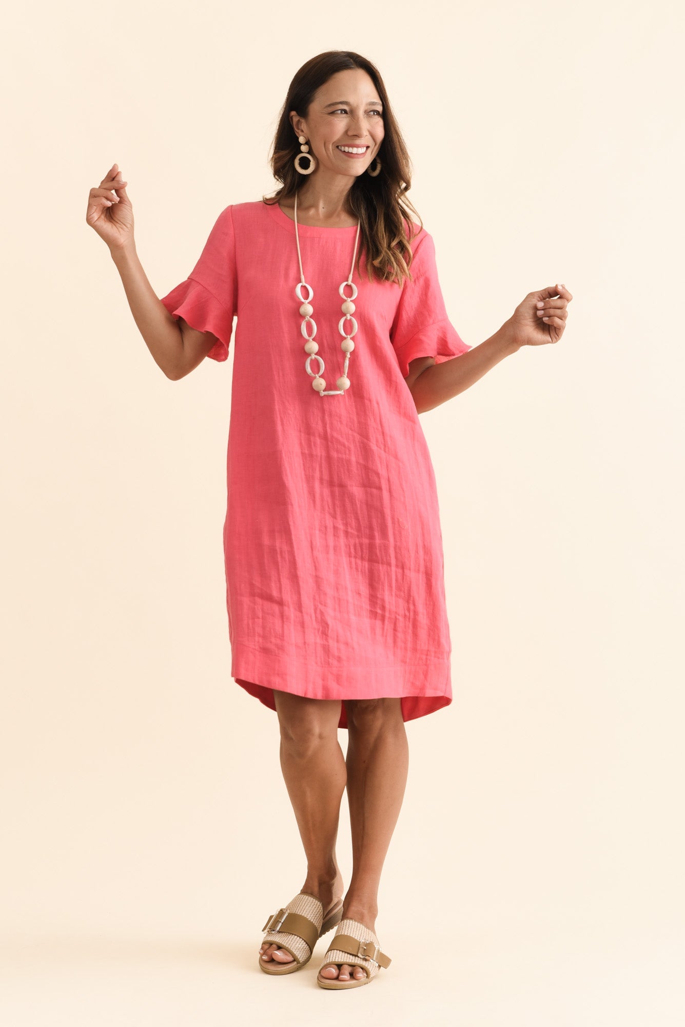 LESLEY MELON LINEN FLUTTER SLEEVE DRESS