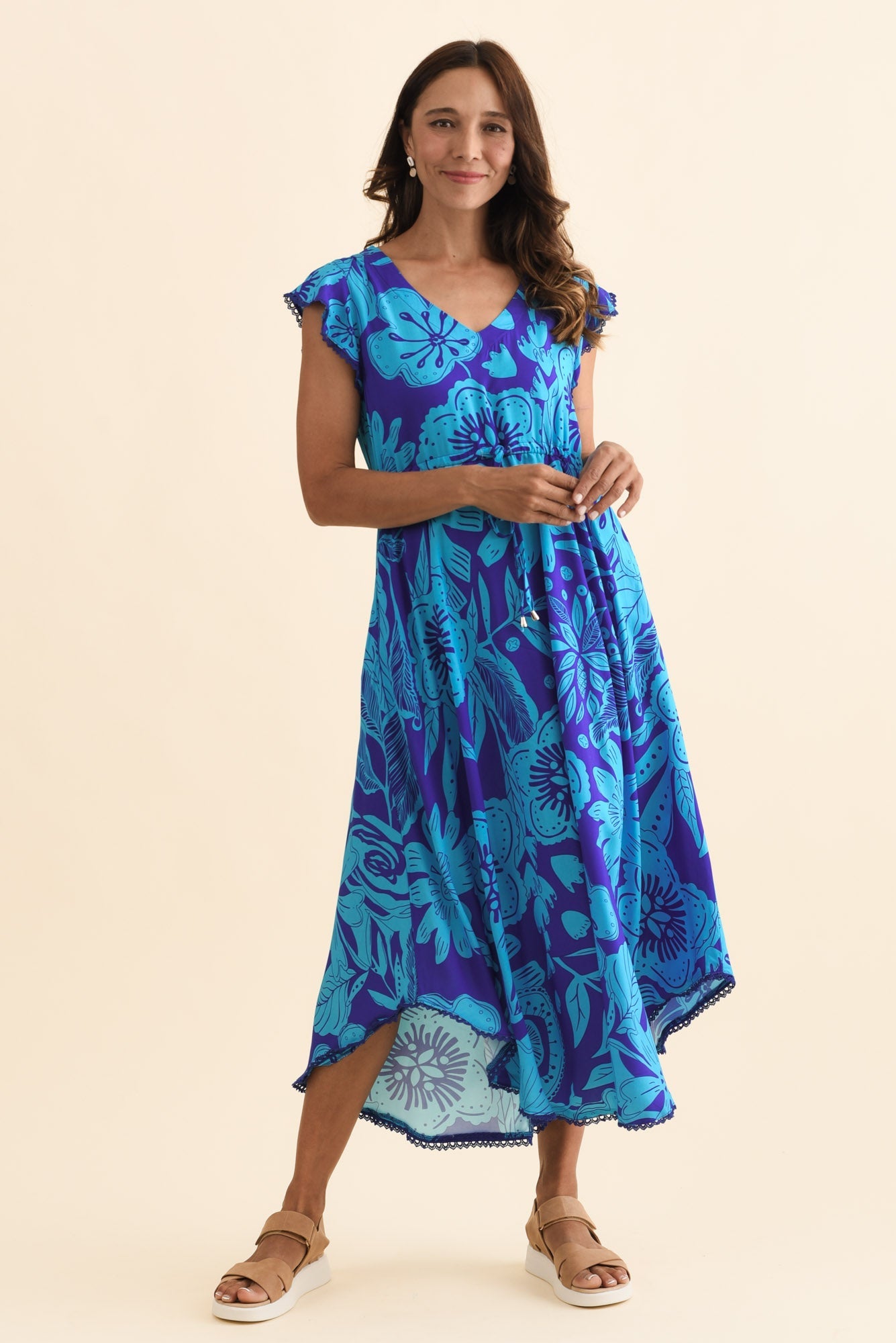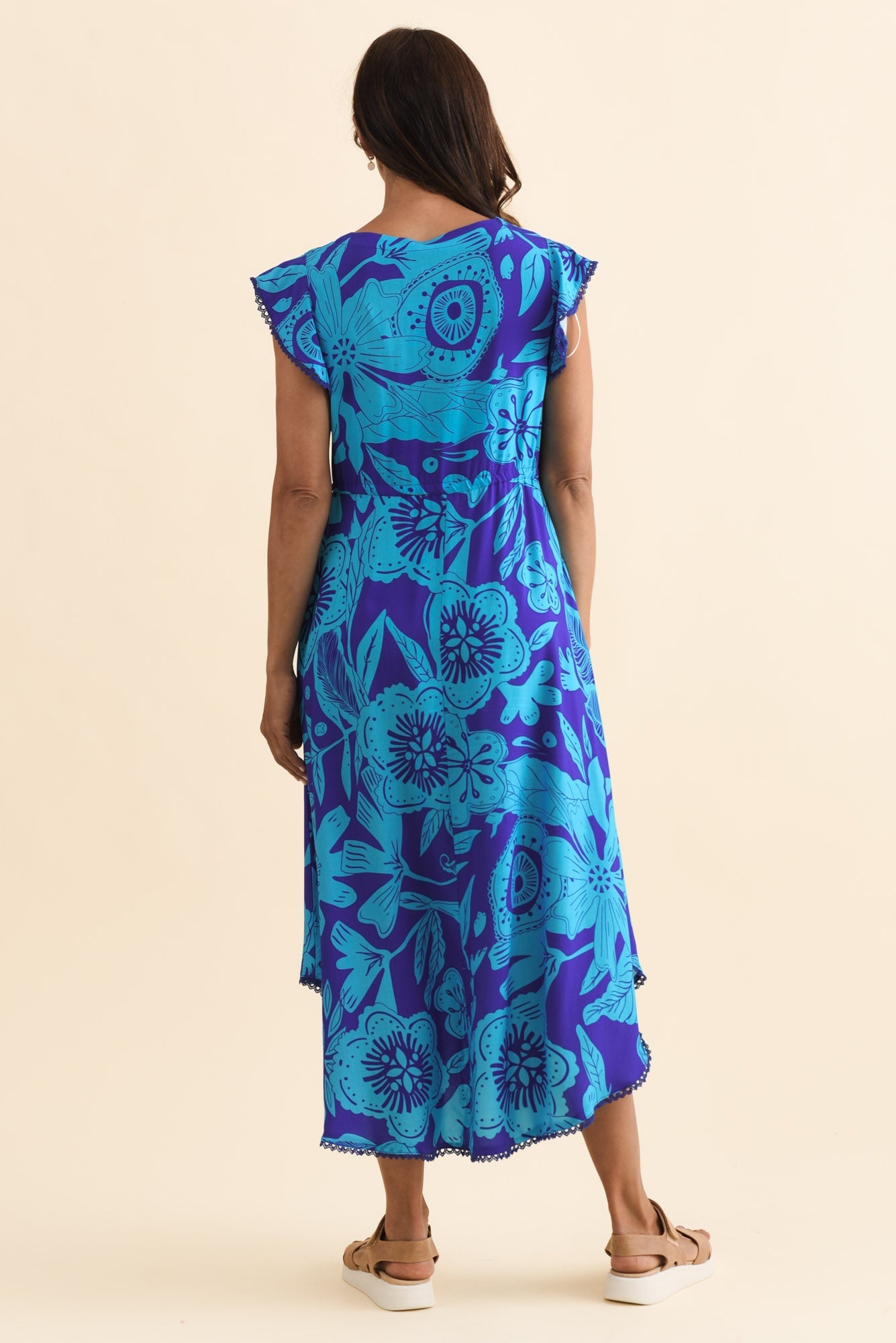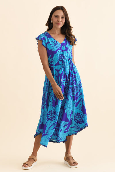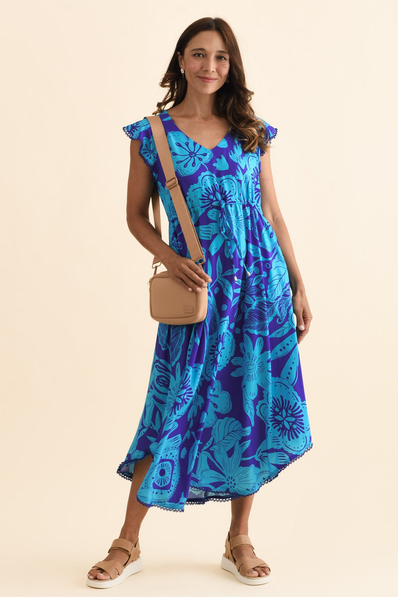 LIBBY BLUE TROPICAL MIDI DRESS