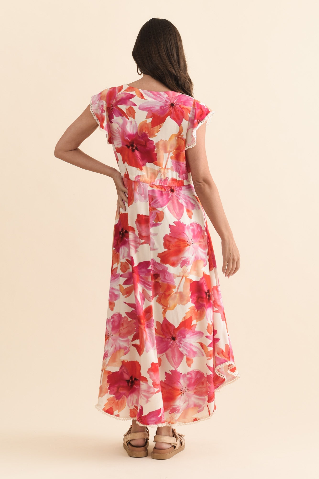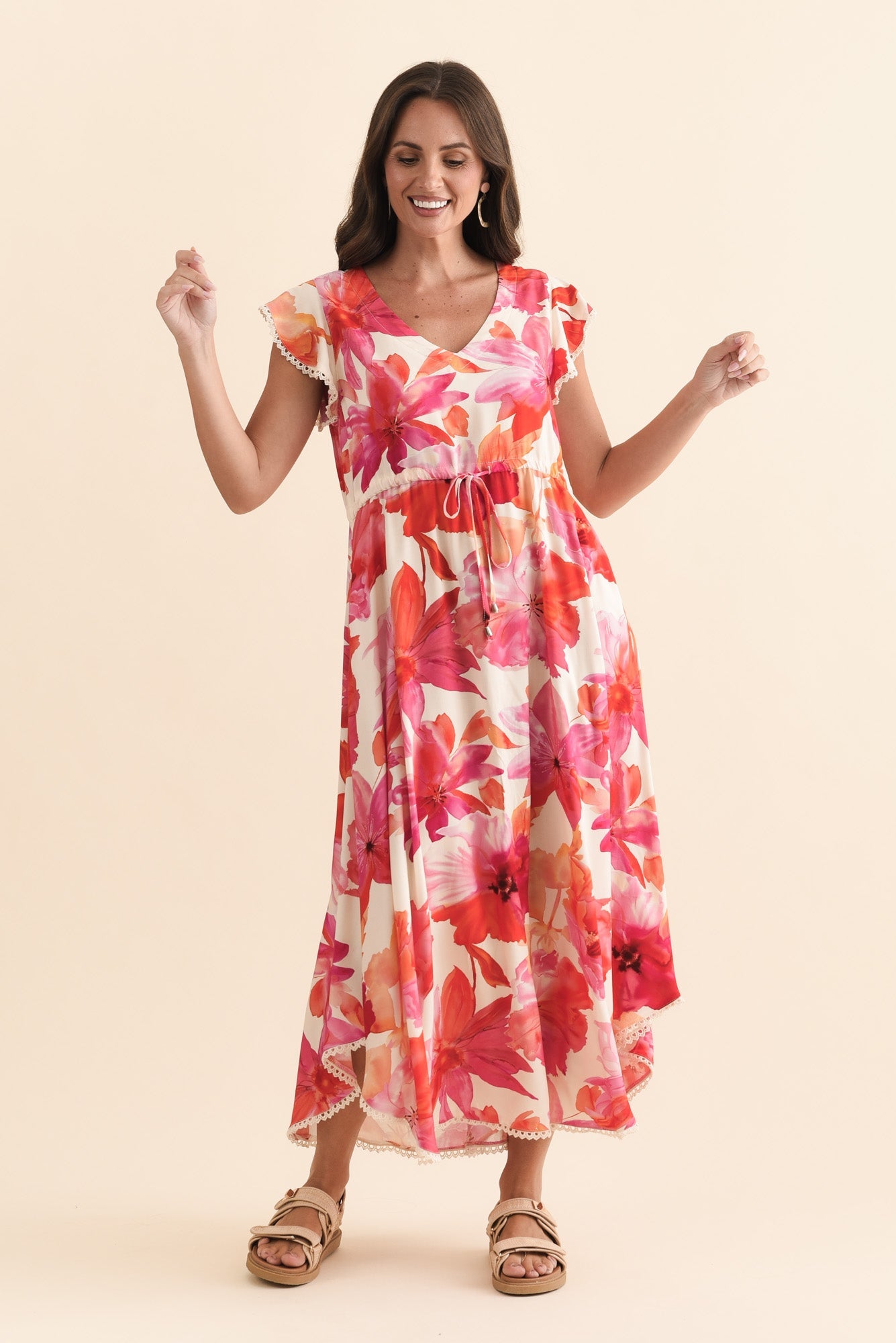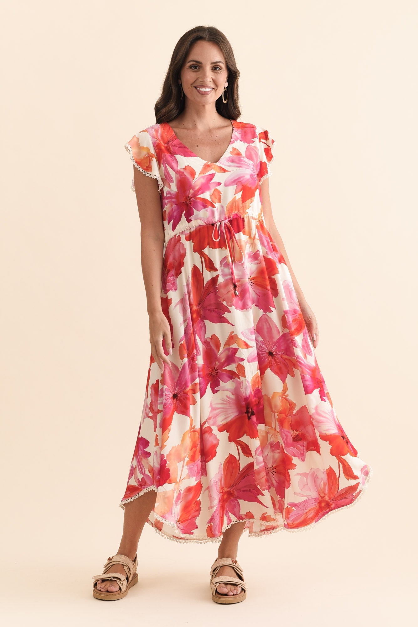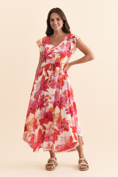 Libby Orange Flower Midi Dress