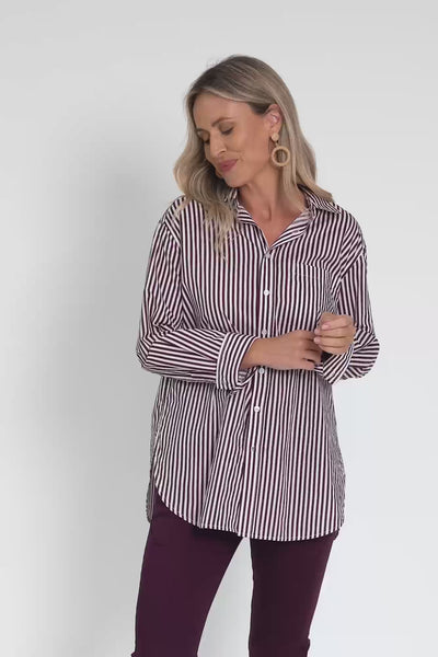 LILA BURGUNDY STRIPE COTTON POPLIN SHIRT
