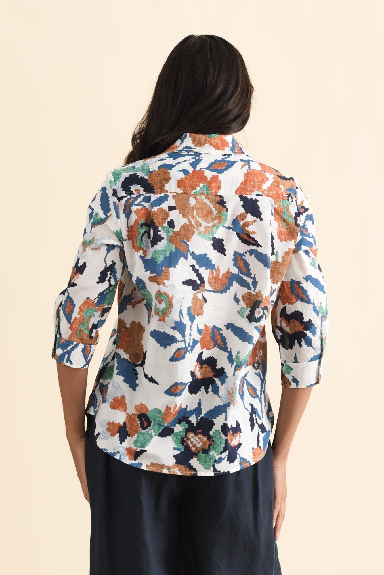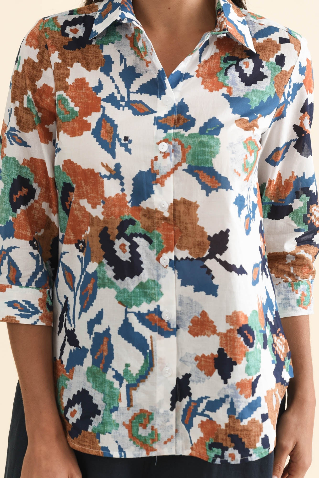 LILAH ORANGE GARDEN COTTON 3/4 SLEEVED SHIRT