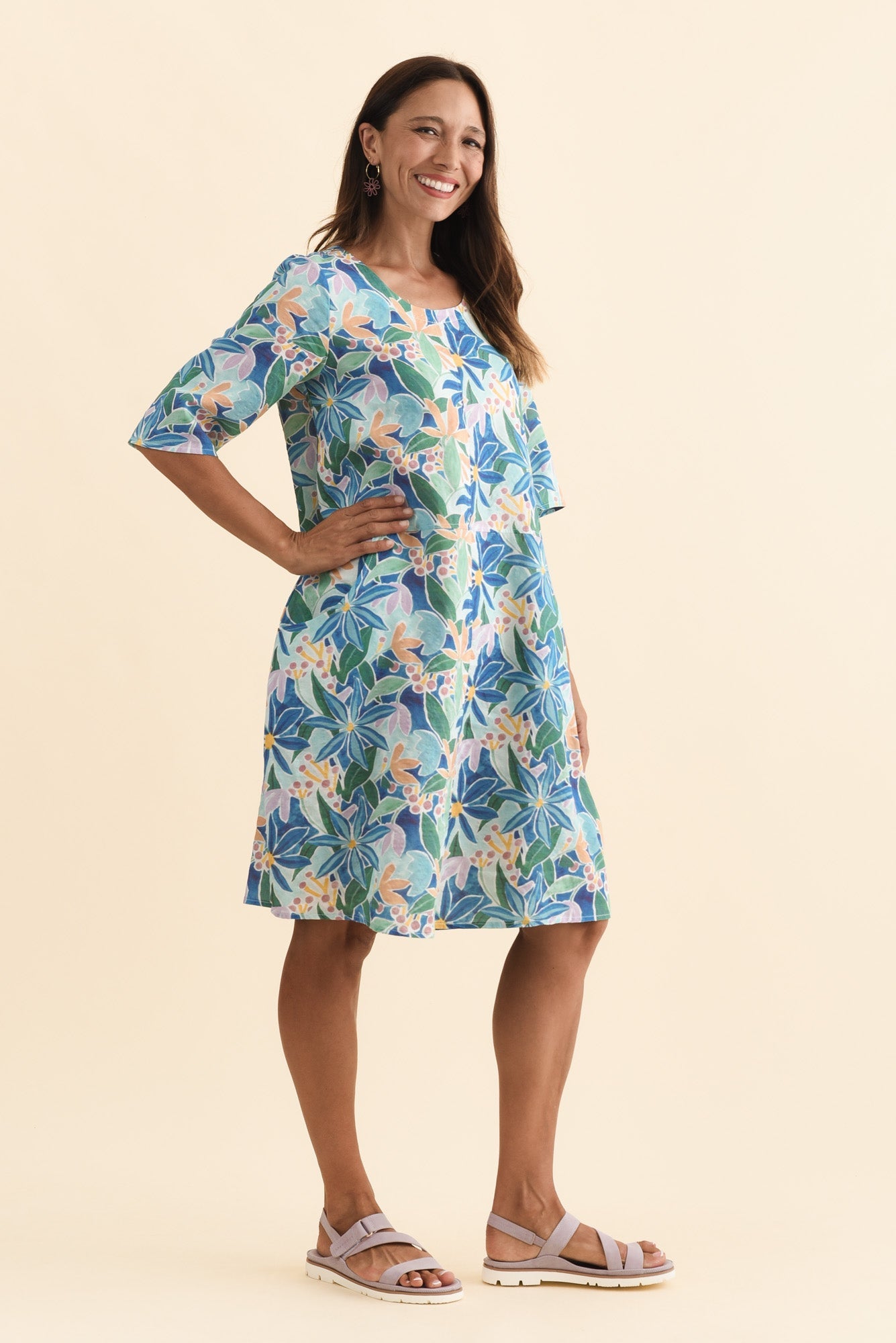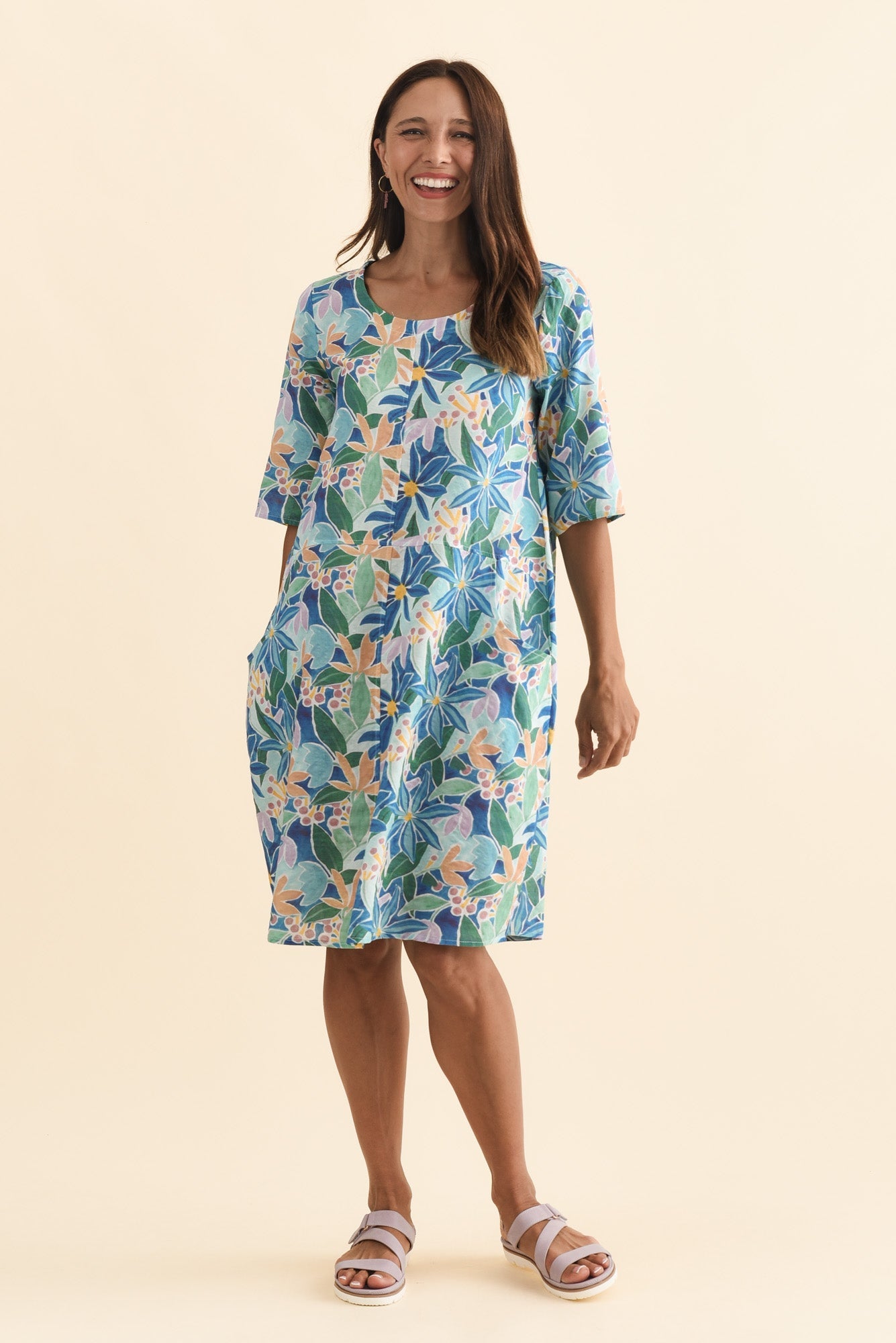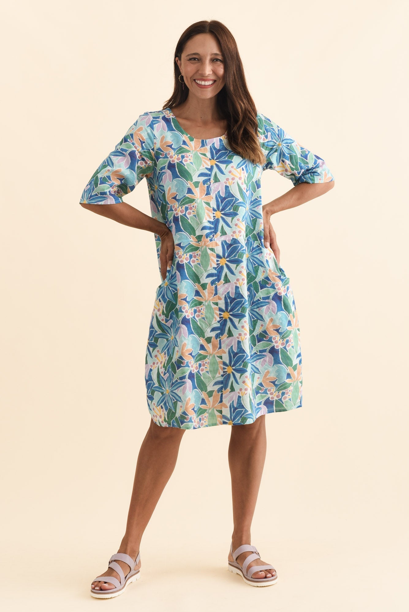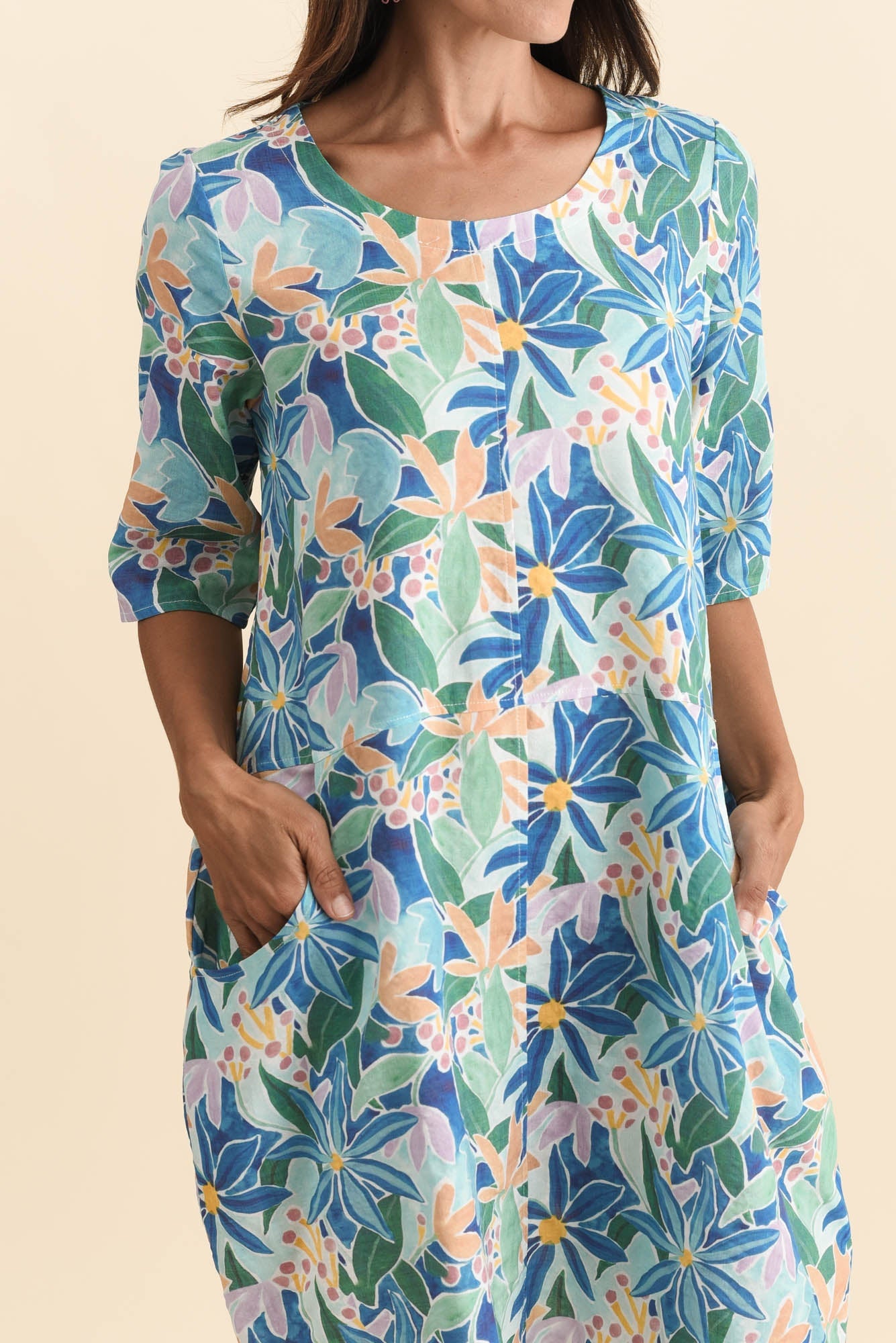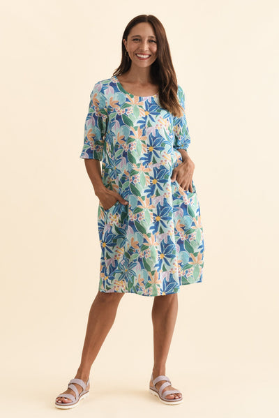 Lilibet Blue Garden Cotton Pocket Dress