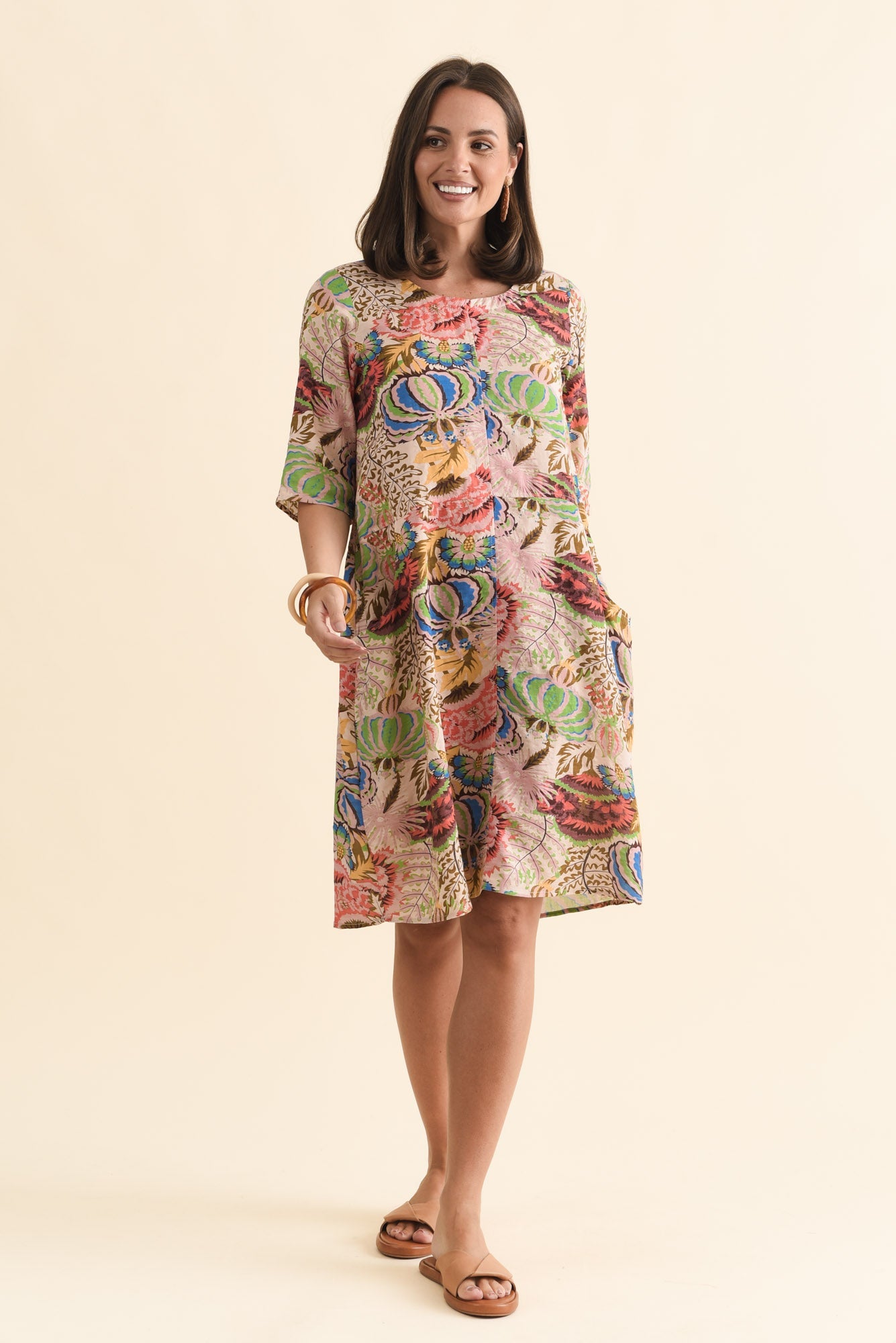 LILIBET GREEN BOTANICAL COTTON POCKET DRESS