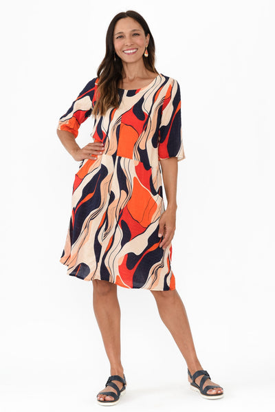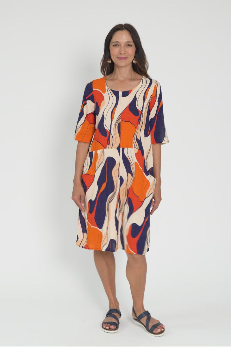Lilibet Orange Abstract Cotton Pocket Dress